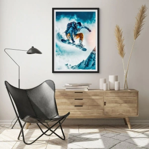 Pôster com moldura preta - Um snowboarder voa sobre o pico de uma montanha coberta de neve - 50x70cm - Emoções extremas - Decoração de parede moderna para a sala de estar e quarto ARTTOR