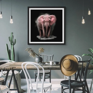 Pôster - Não Pense em um Elefante Rosa! - Um Elefante Rosa em um Espaço Dinâmico e Negro
