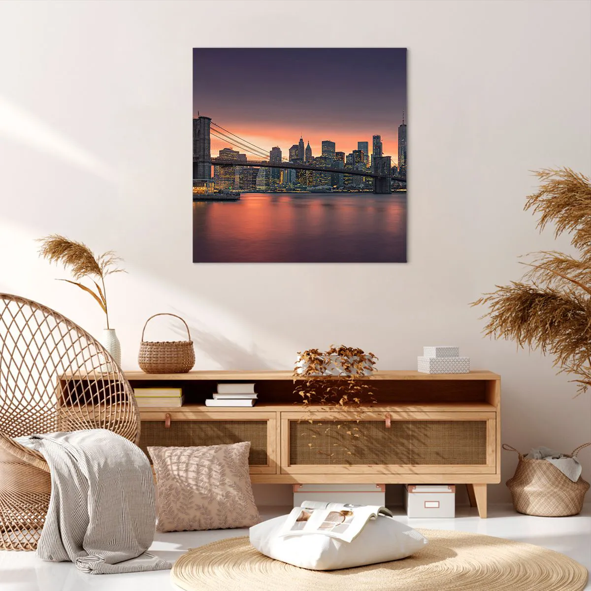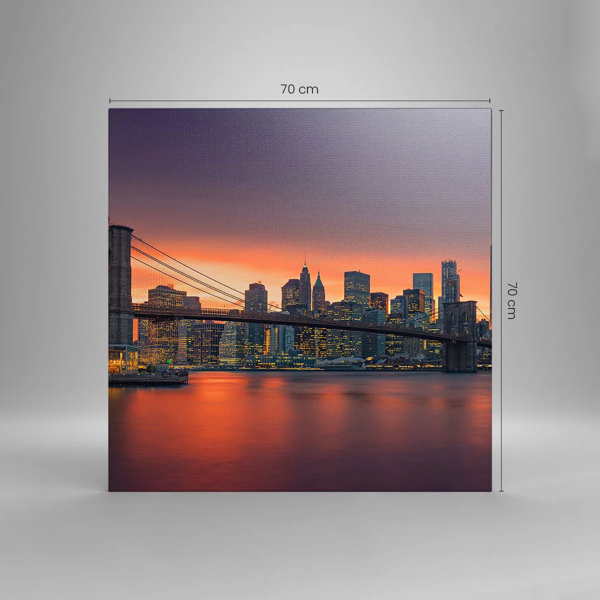 A tela é esticada na moldura. Os lados e bordas são impressos para criar uma continuação da imagem. O quadro está pronto para ser pendurado na parede. Cada produto tem um gancho ligado à moldura e um conjunto de montagem (parafuso + cavilha).
