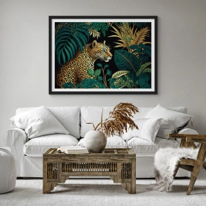 Pôster com moldura preta - Leopardo dourado na selva tropical - 50x70cm - Um anfitrião na selva - Decoração de parede moderna para a sala de estar e quarto ARTTOR
