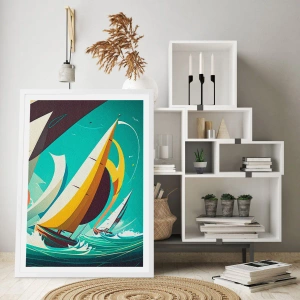 • Veleiros, Regata, Mar, Náutica, Esportes e Hobbies, Para a sala de jantar, Para a casa de banho, Para a sala dos jovens, Para o hall, Para a sala de estar, Para o quarto, Branco, Marrom, Azul, Amarelo, Horizontal