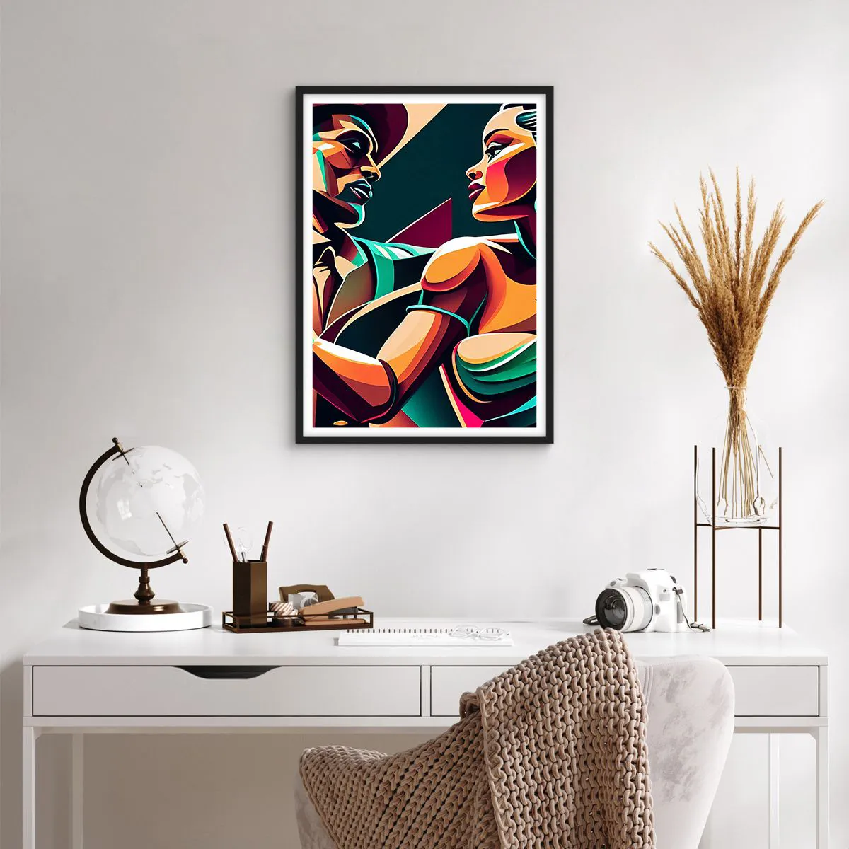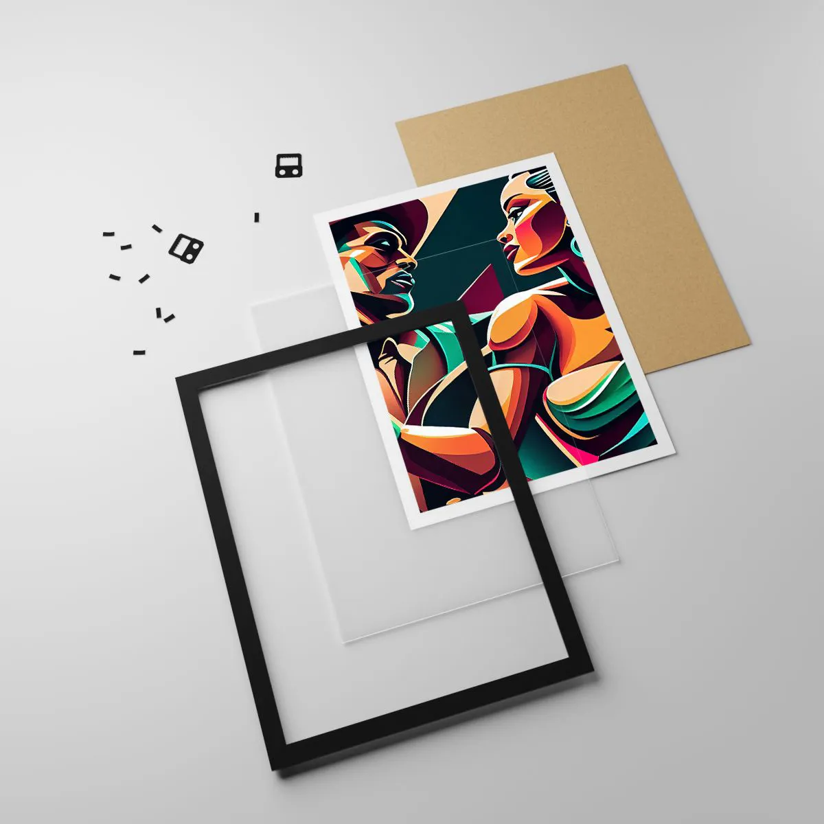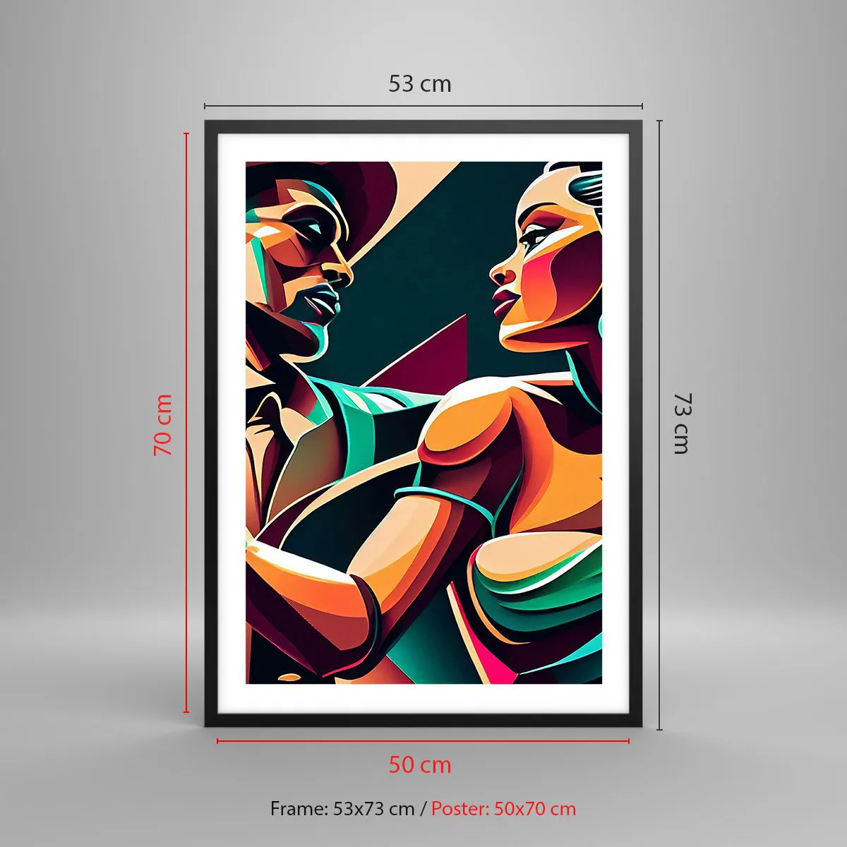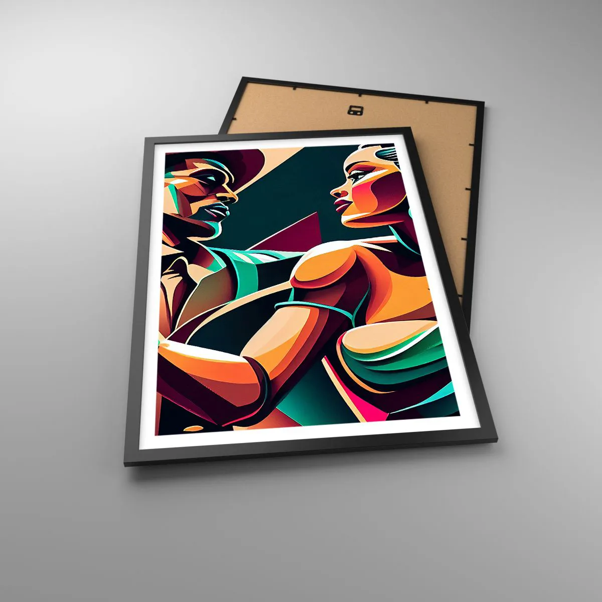 Pôster com moldura preta - Ilustração colorida de um casal dançando tango no estilo pop art - 50x70cm - No ritmo do coração - Decoração de parede moderna para a sala de estar e quarto ARTTOR