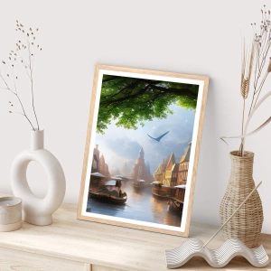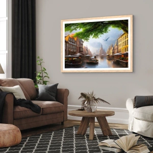 Pôster com moldura de carvalho claro - Paisagem urbana holandesa - 61x91 cm
