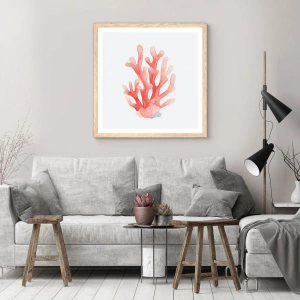 Pôster com moldura de carvalho claro - Coral de cor coral - 61x91 cm
