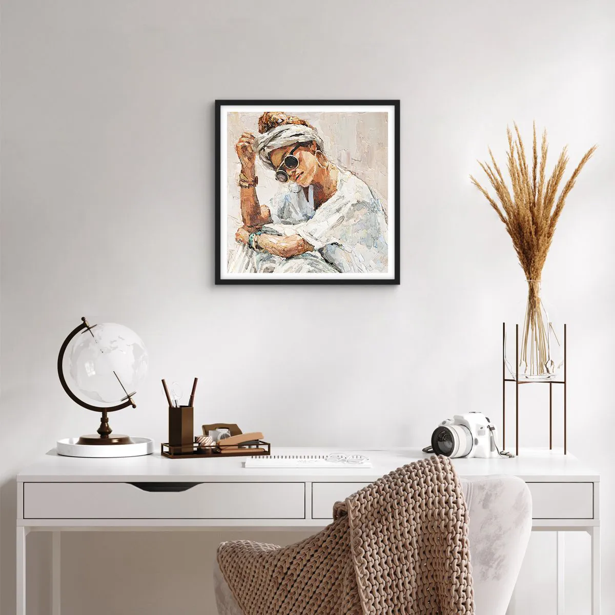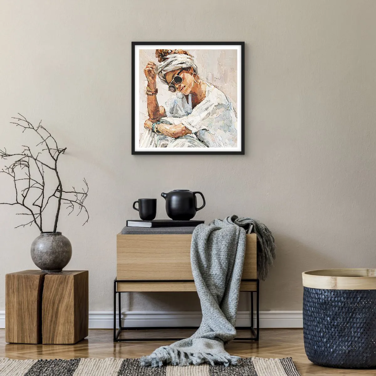 Pôster com moldura preta - Retrato em pleno sol - 50x50 cm