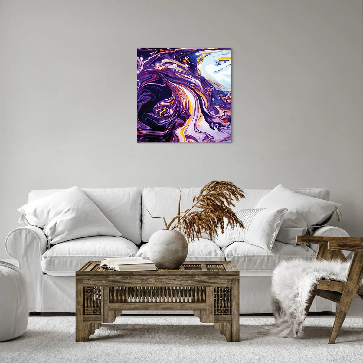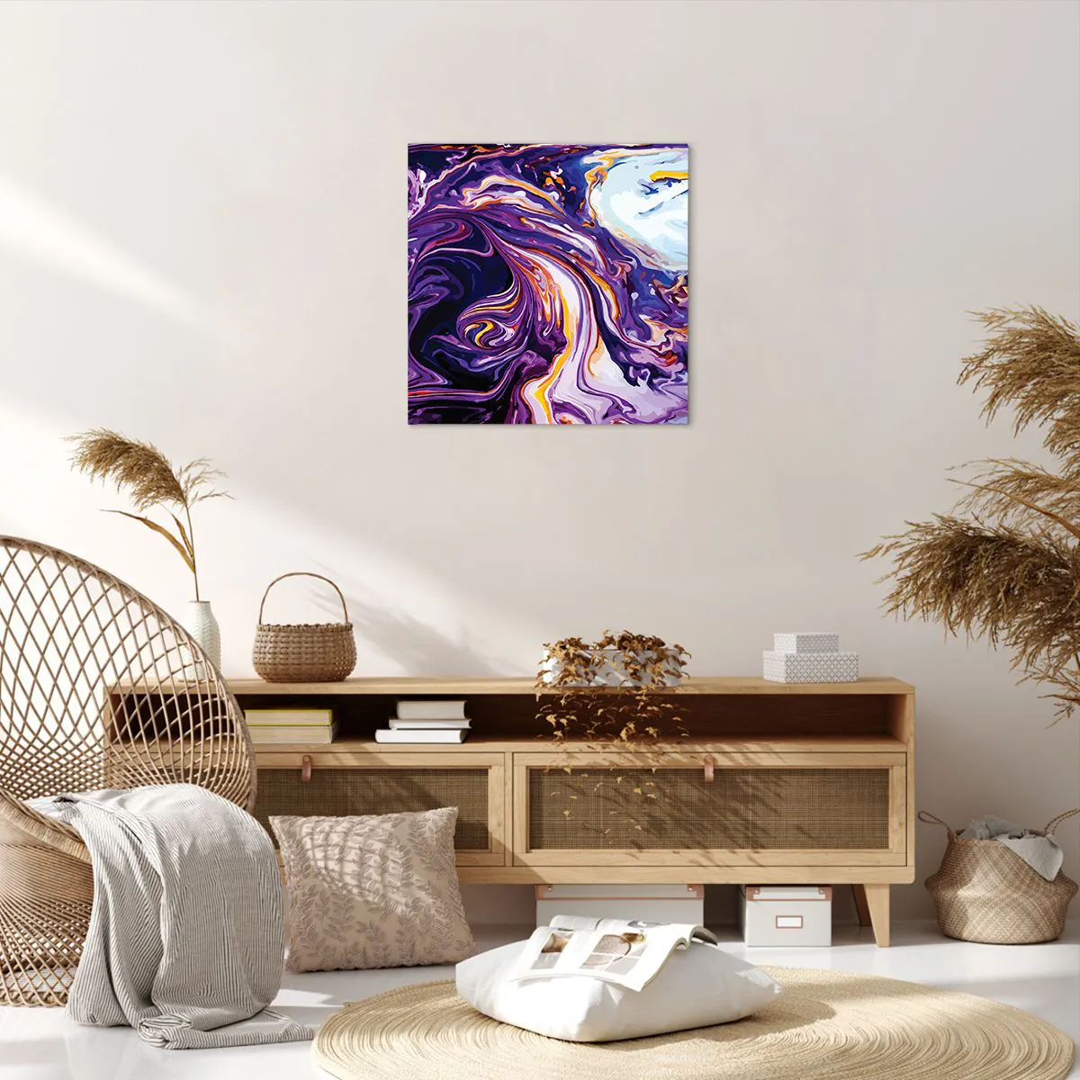 Quadro em tela - Onde o espaço se dobra em roxo - 50x50 cm