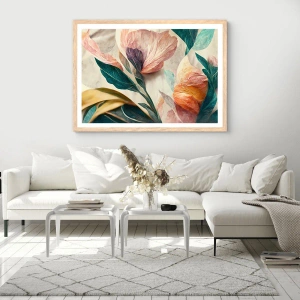Pôster com moldura de carvalho claro - Flores das ilhas do sul - 100x70 cm