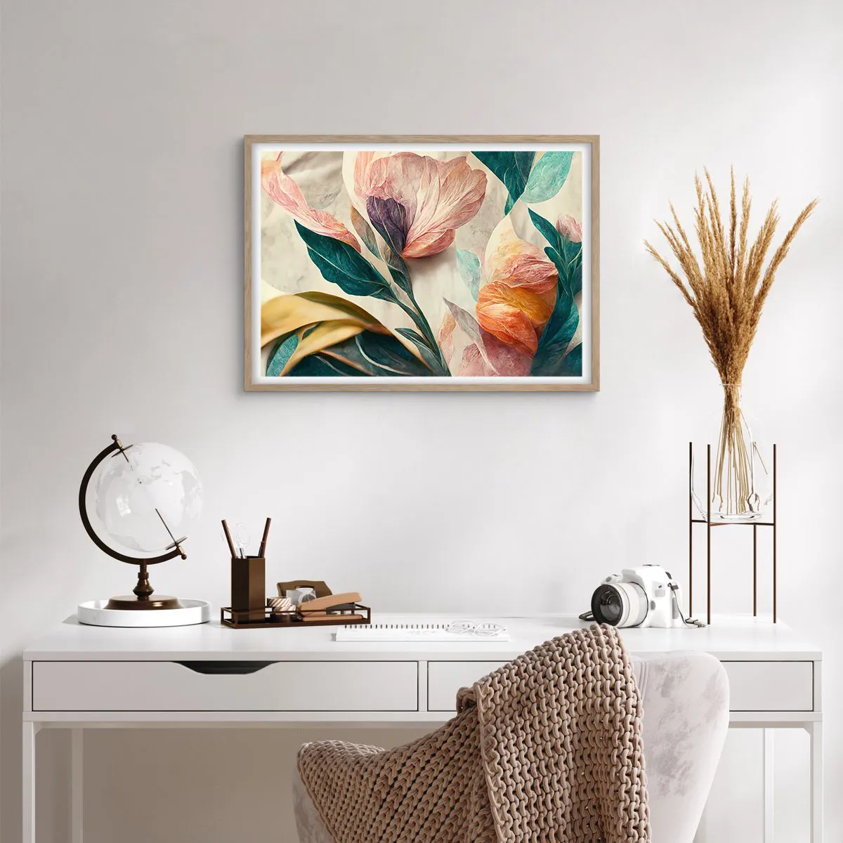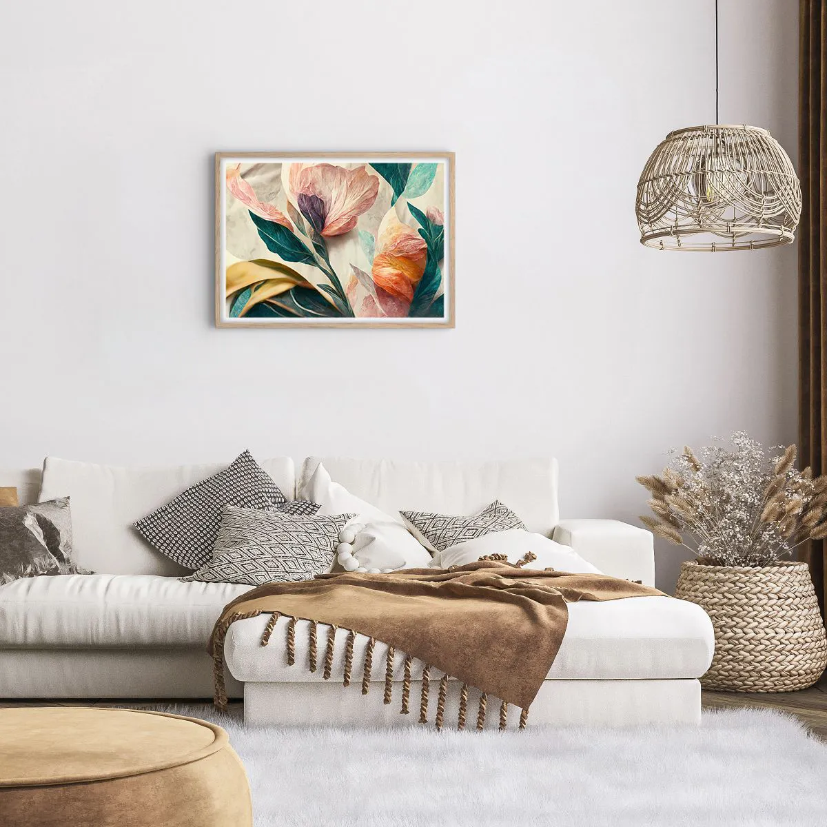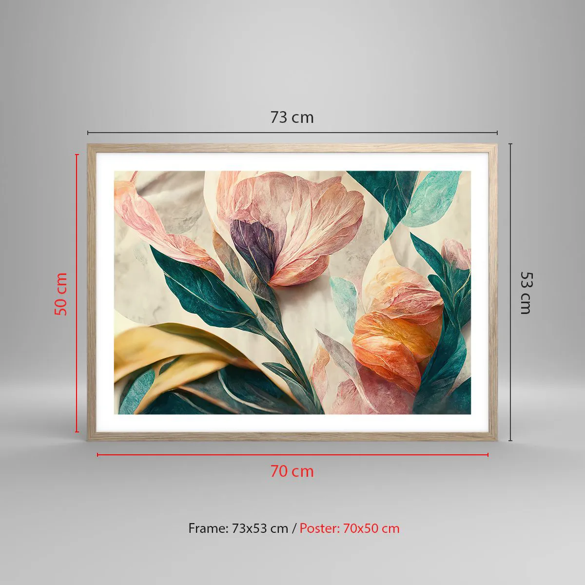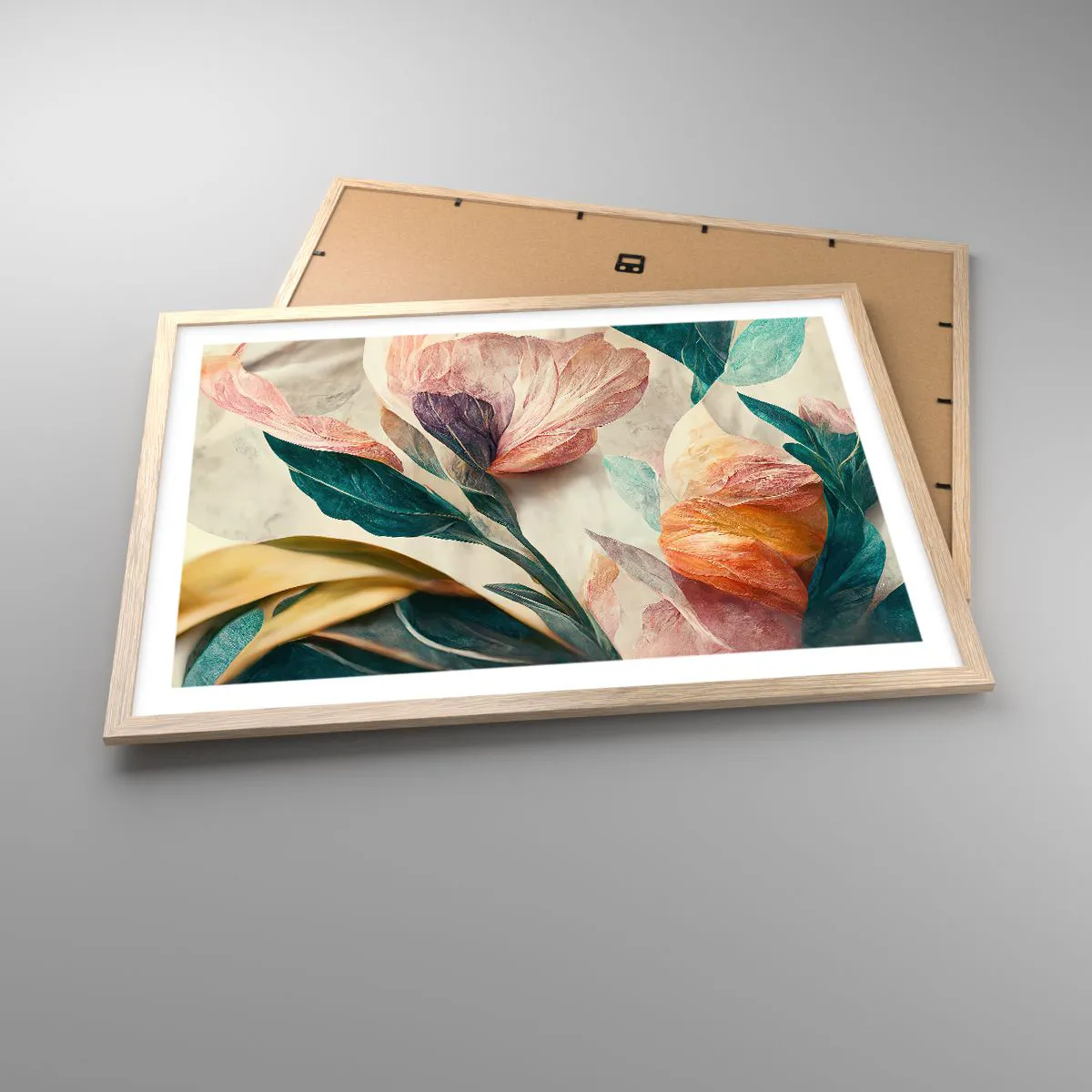 Pôster com moldura de carvalho claro - Flores das ilhas do sul - 70x50 cm