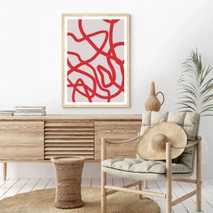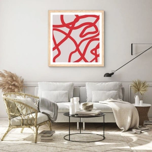 Pôster com moldura de carvalho claro - Vermelho em branco - 60x60 cm