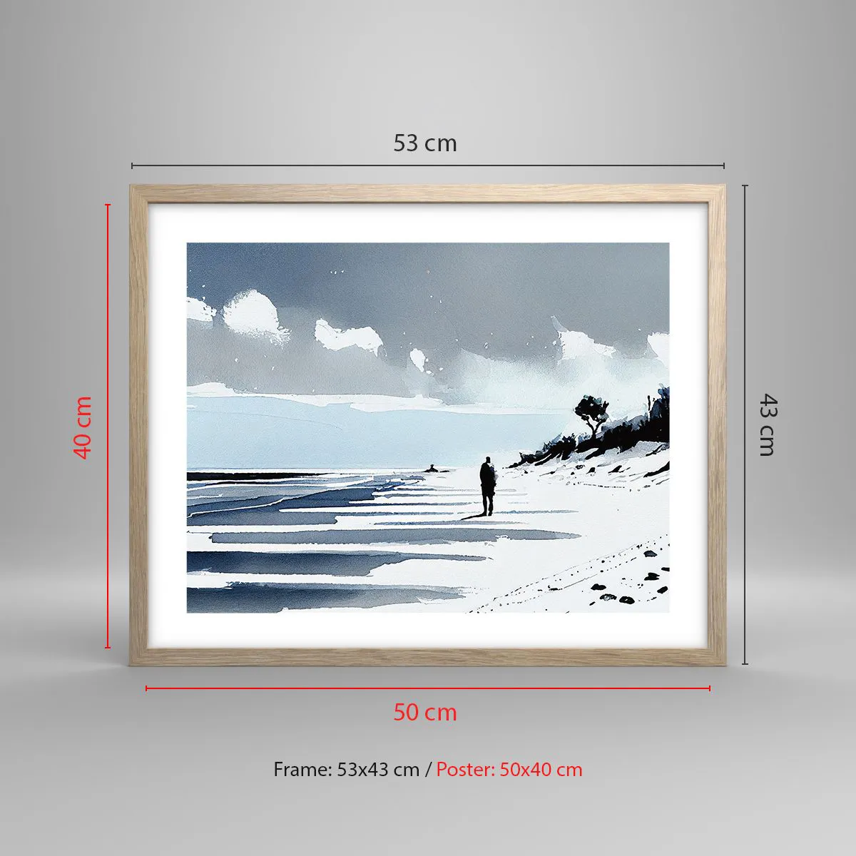 Pôster com moldura de carvalho claro - Sozinho - 50x40 cm