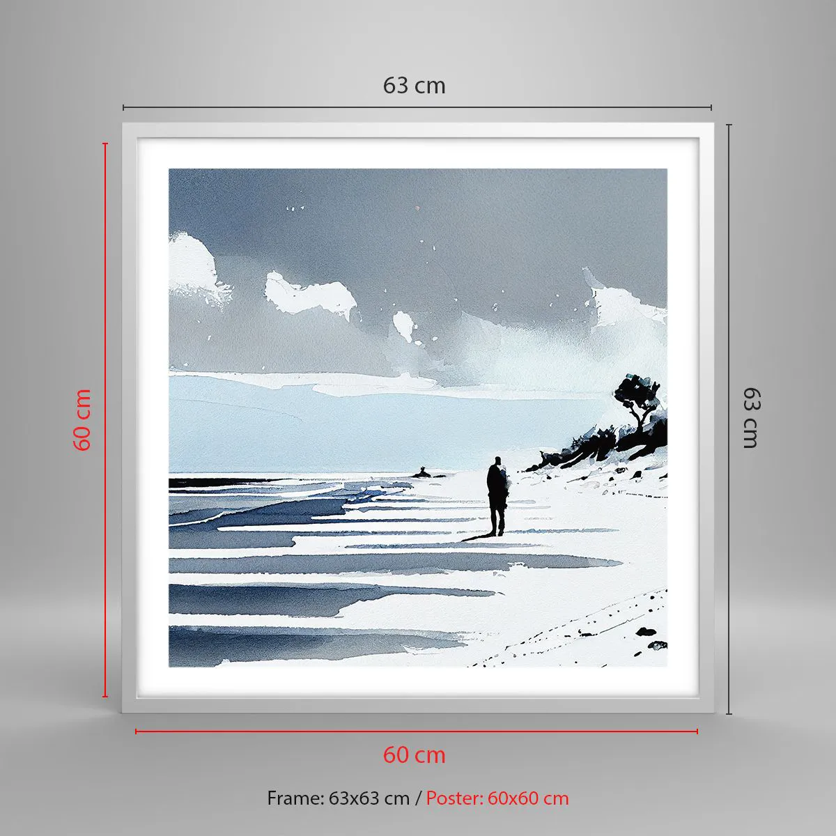 Pôster em moldura branca - Sozinho - 60x60 cm