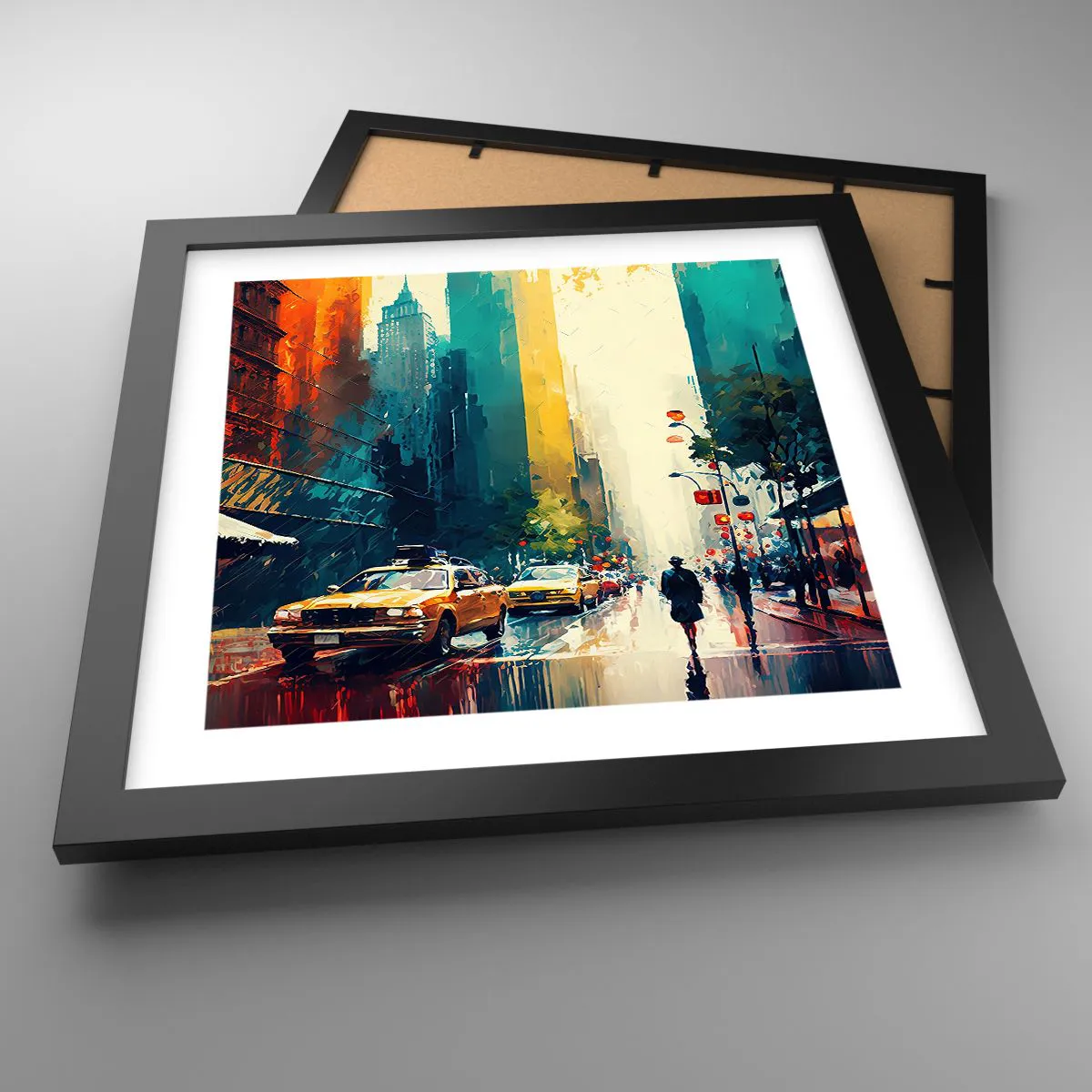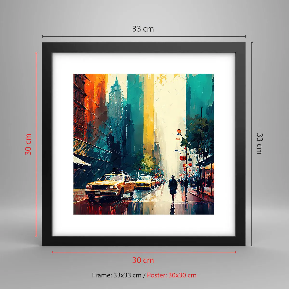 Pôster com moldura preta - Nova York – até a chuva é colorida aqui - 30x30 cm