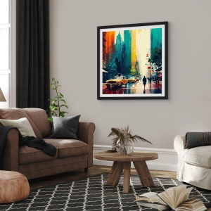 Pôster com moldura preta - Uma rua colorida de uma cidade grande com táxis amarelos - 50x70cm - Nova York – até a chuva é colorida aqui - Decoração de parede moderna para a sala de estar e quarto ARTTOR