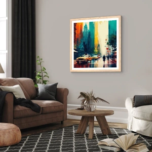 Pôster com moldura de carvalho claro - Nova York – até a chuva é colorida aqui - 40x40 cm