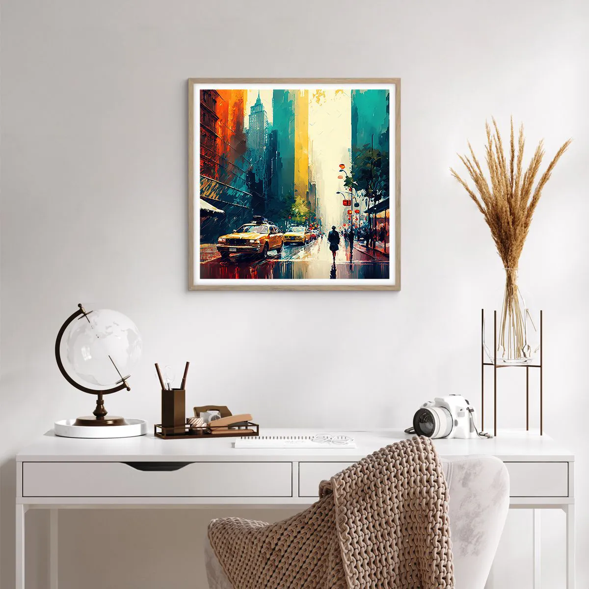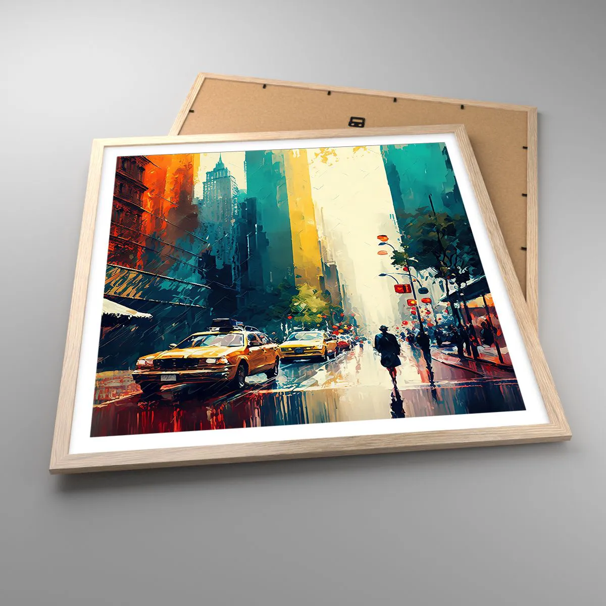Pôster com moldura de carvalho claro - Nova York – até a chuva é colorida aqui - 60x60 cm