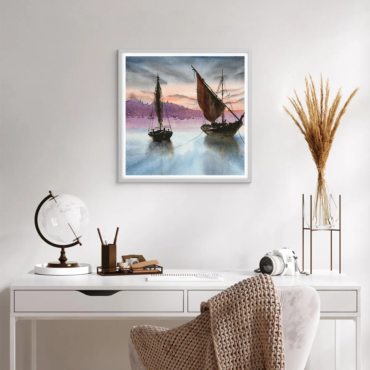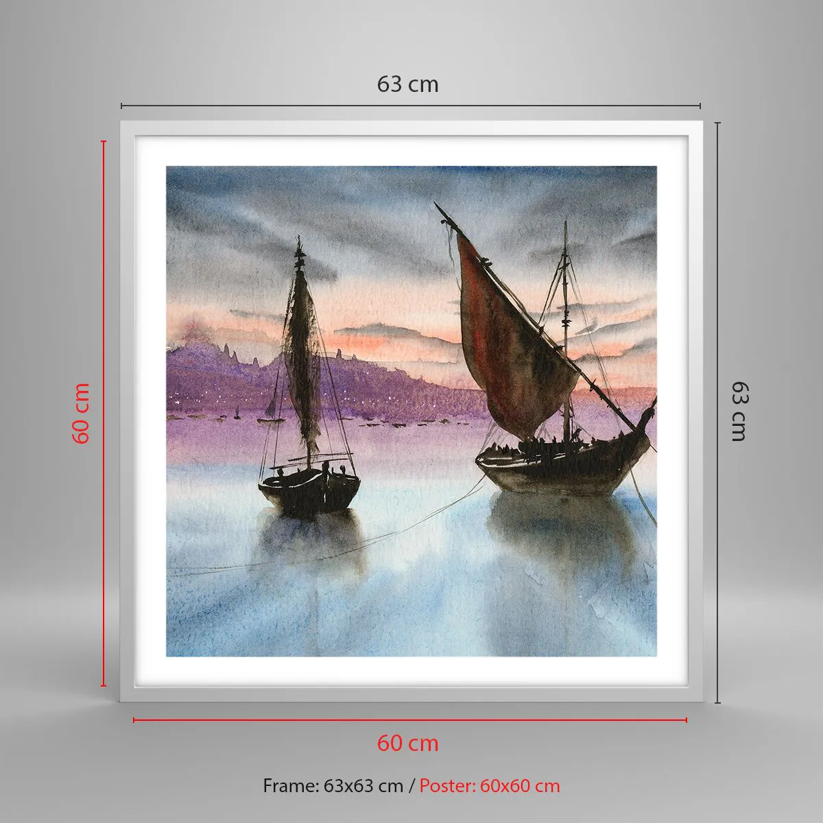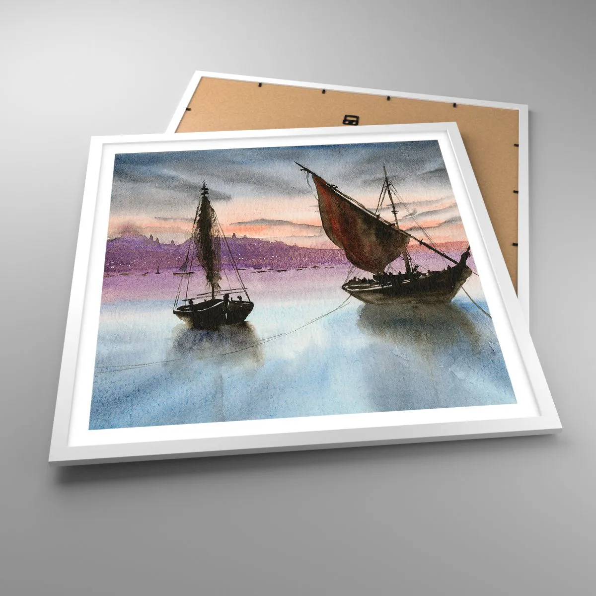 Pôster em moldura branca - Noite no porto - 60x60 cm