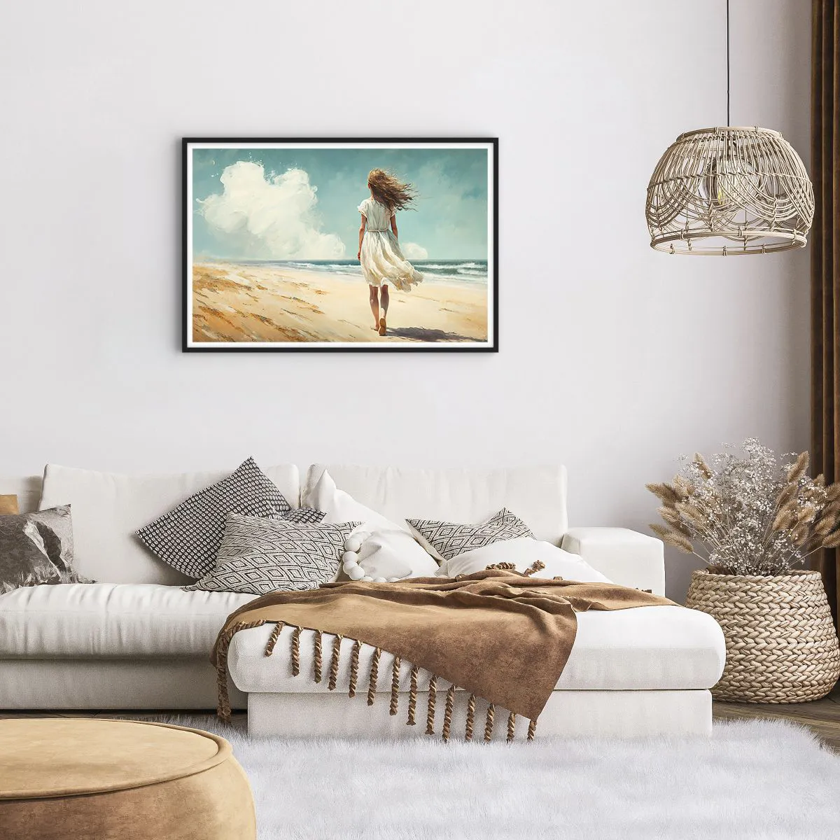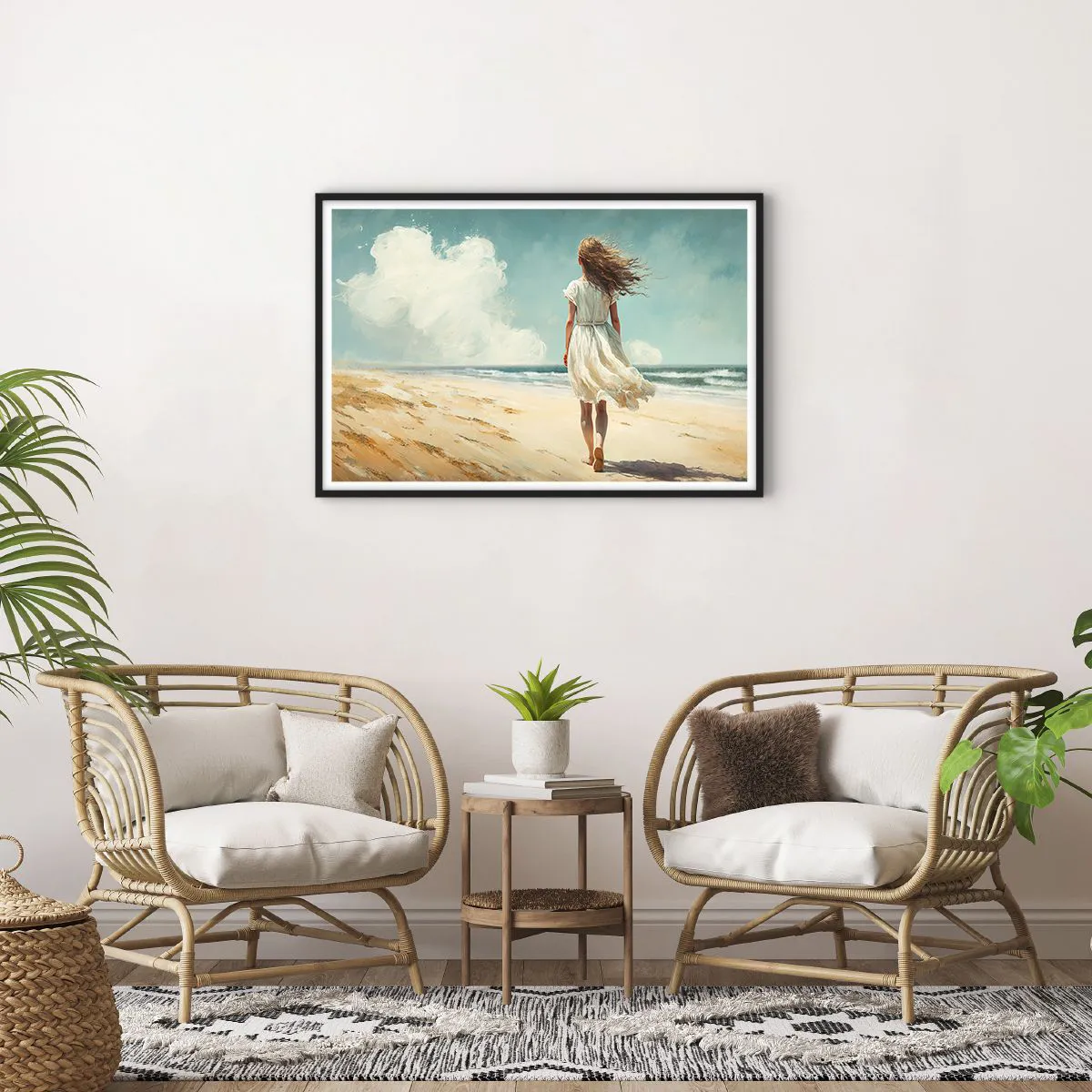 • menina, praia, caminhada, Pessoas, Náutico, Pastel, Paisagens, Viagem, Arte, Para o escritório, Para o escritório, Para a sala de jantar, Para a casa de banho, Para o hall, Para a sala de estar, Para o quarto, Branco, Marrom, Azul, Cinza, Horizontal