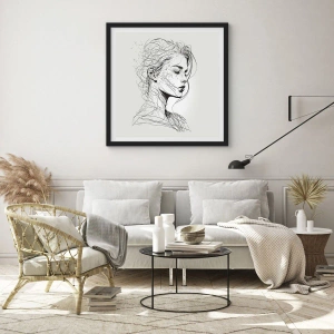 Pôster com moldura preta - Retrato em pensamento - 40x40 cm