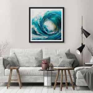Onda em tons intensos de turquesa e azul é um tema que traz energia e movimento ao interior. O pôster emoldurado, produzido pela ARTTOR, é uma decoração perfeita para espaços modernos, como salas de estar ou escritórios.