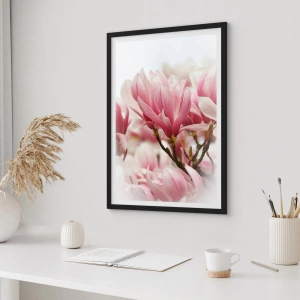 Flores da Primavera é um pôster que captura a beleza extraordinária da natureza primaveril. Ele retrata flores de magnólia desabrochando, cujas pétalas delicadas parecem flutuar na luz suave, enfatizando sua sutileza e elegância natural.