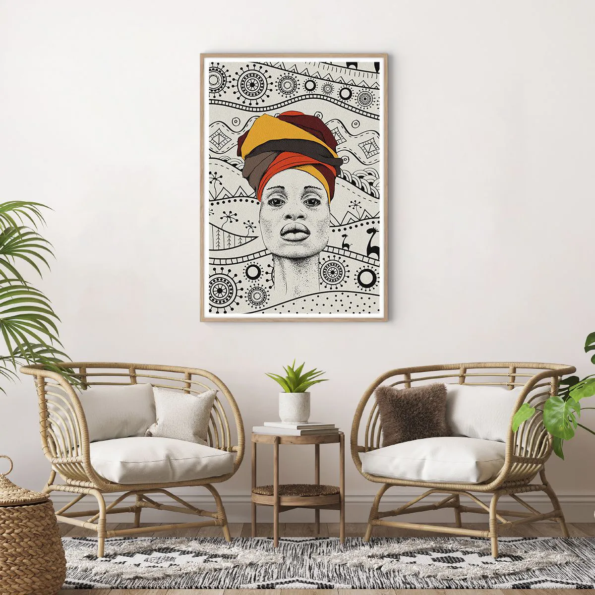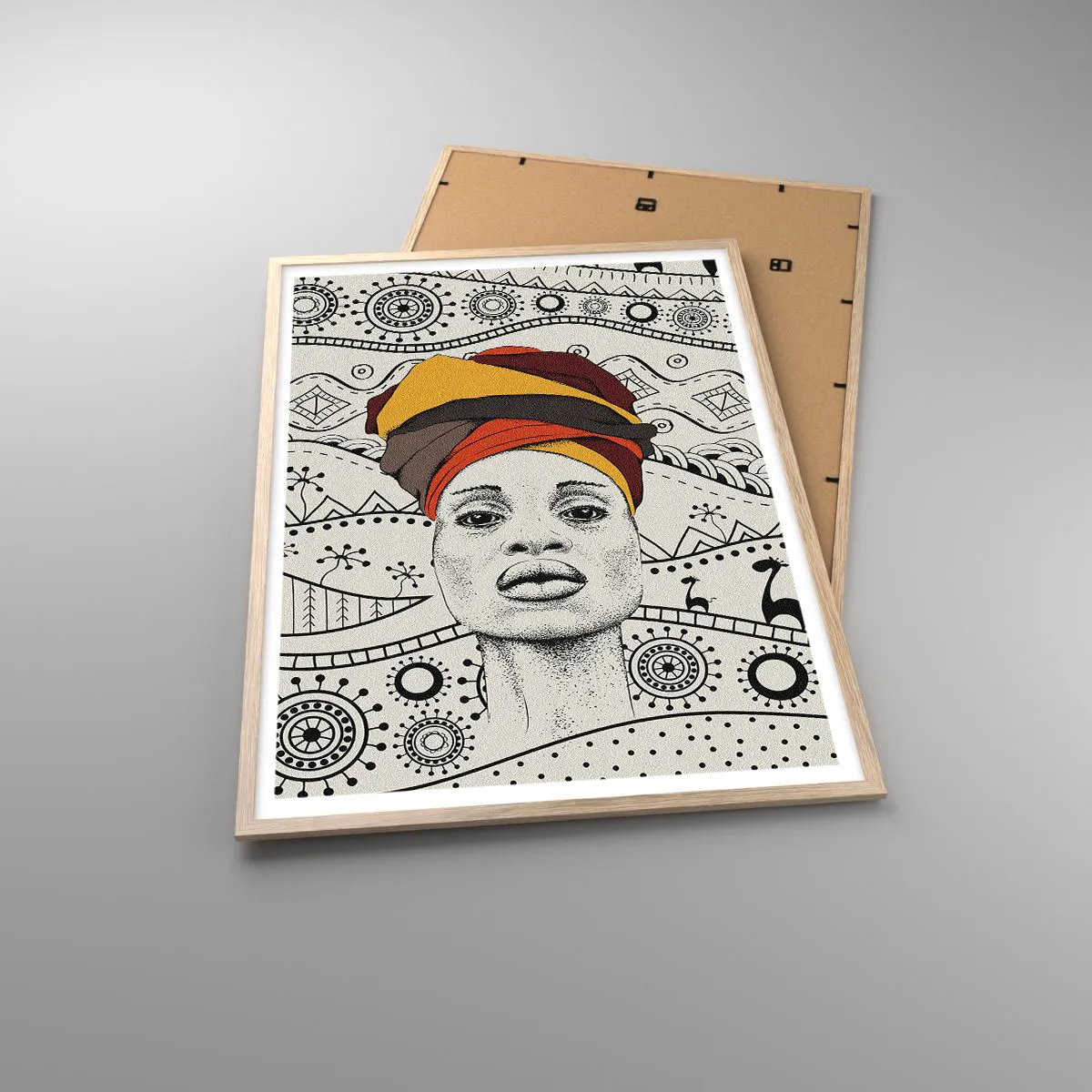 Pôster com moldura de carvalho claro - Retrato africano - 70x100 cm