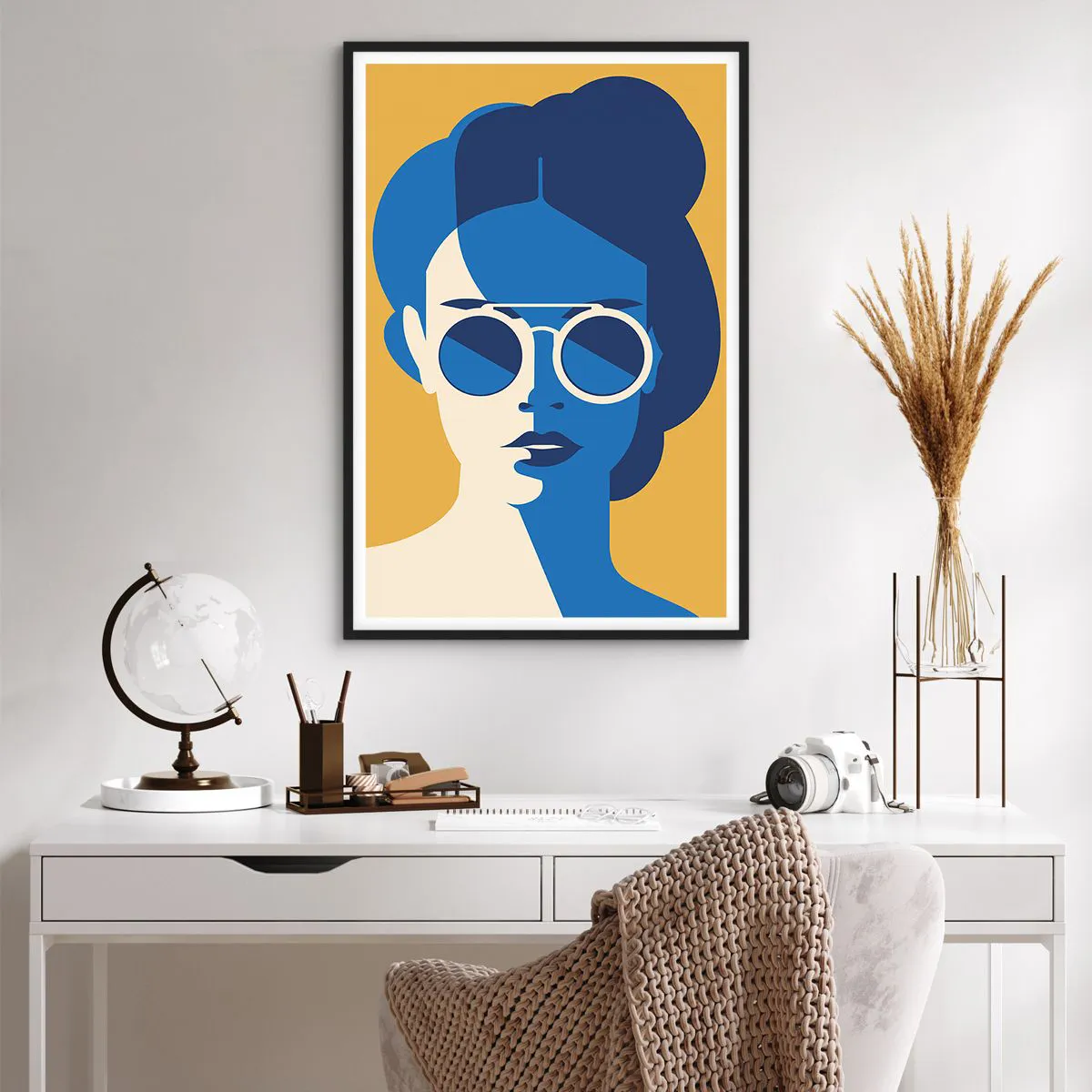 • Retrô, Minimalismo, Mulher, Pessoas, Moda, Para a sala de jantar, Para o hall, Para a sala de estar, Para o quarto, , Branco, azul, amarelo, Vertical