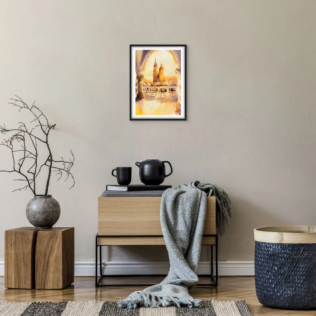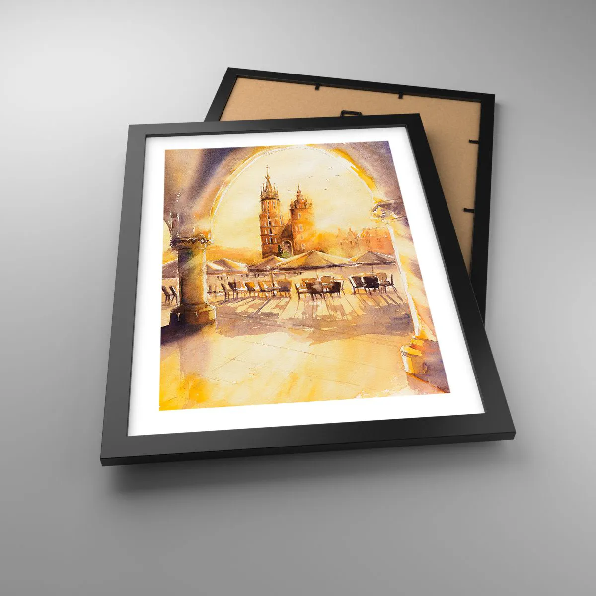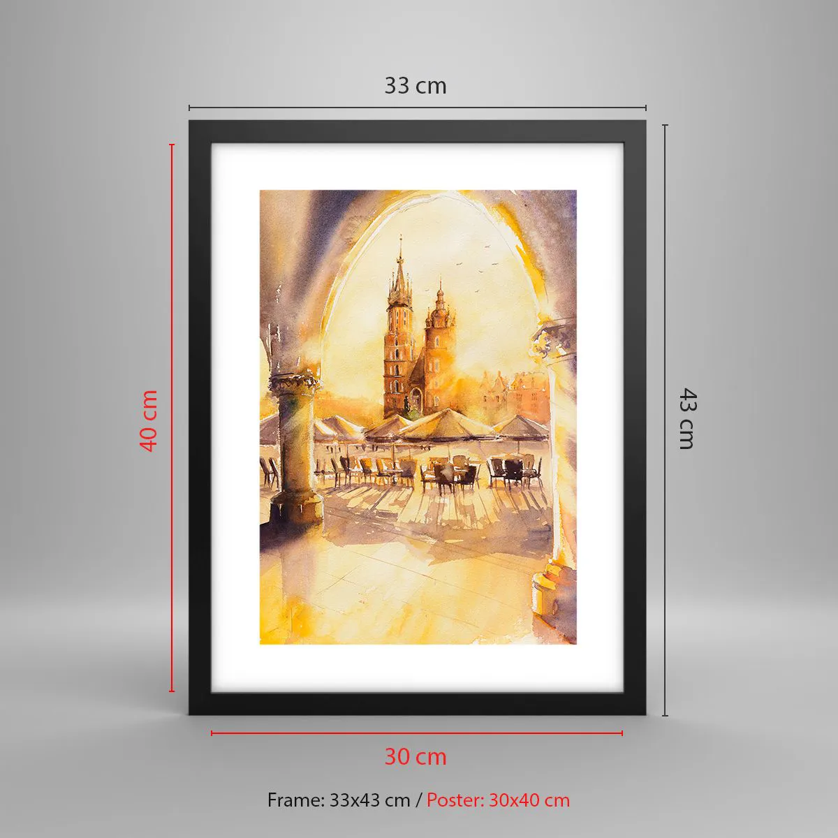 Pôster com moldura preta - Pôr do sol na praça do mercado de Cracóvia - 30x40 cm