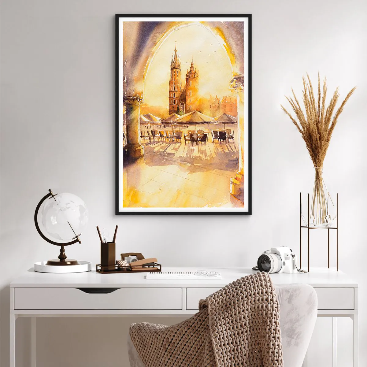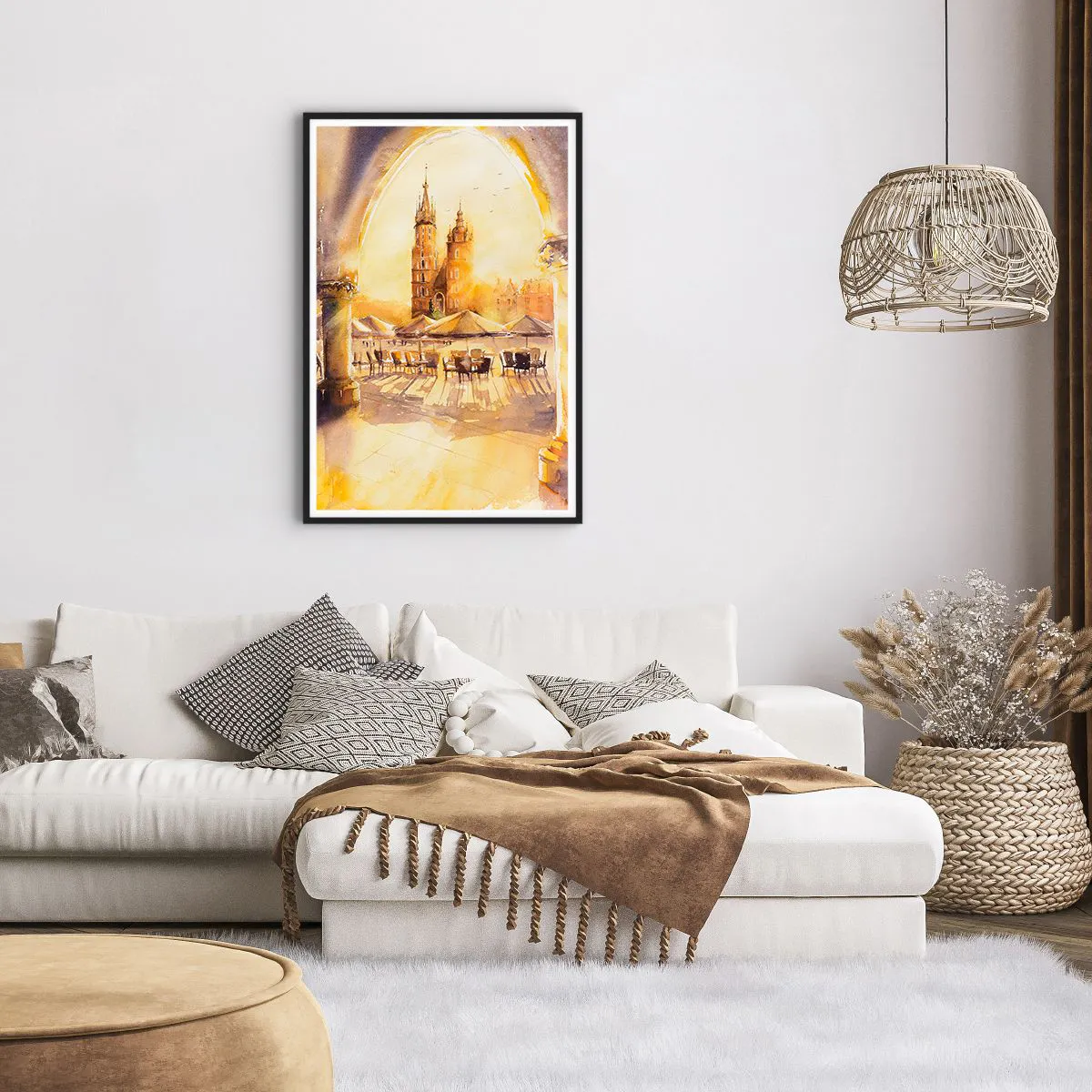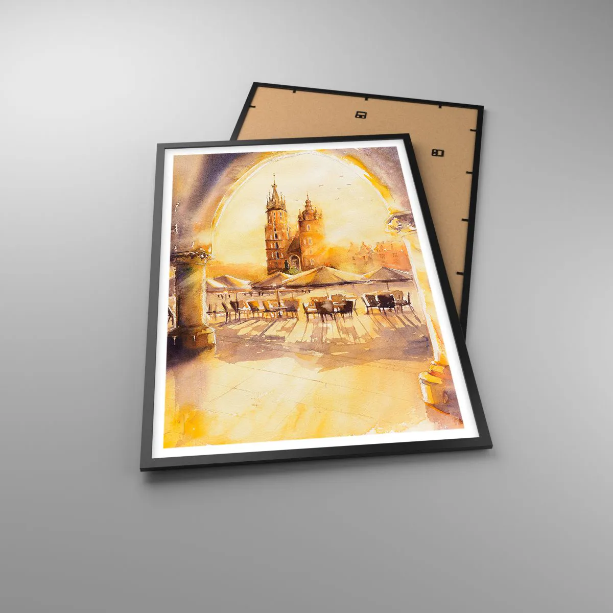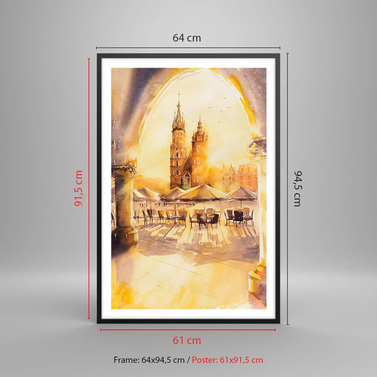 Pôster com moldura preta - Pôr do sol na praça do mercado de Cracóvia - 61x91 cm