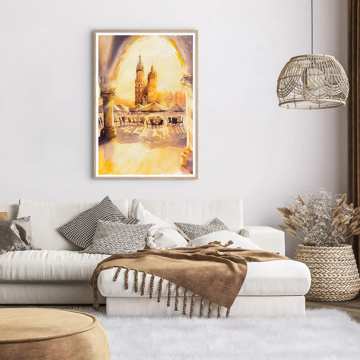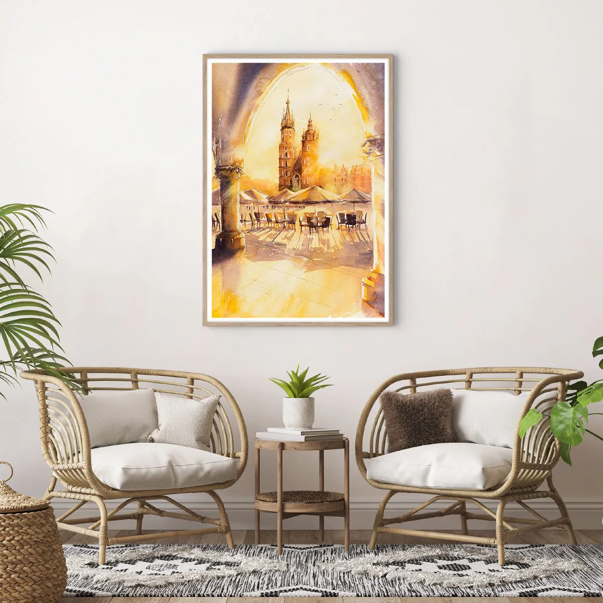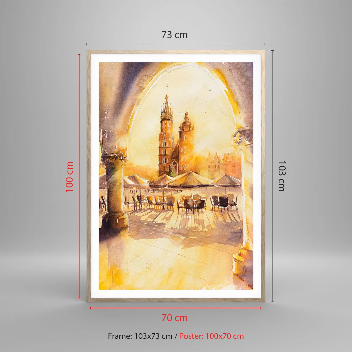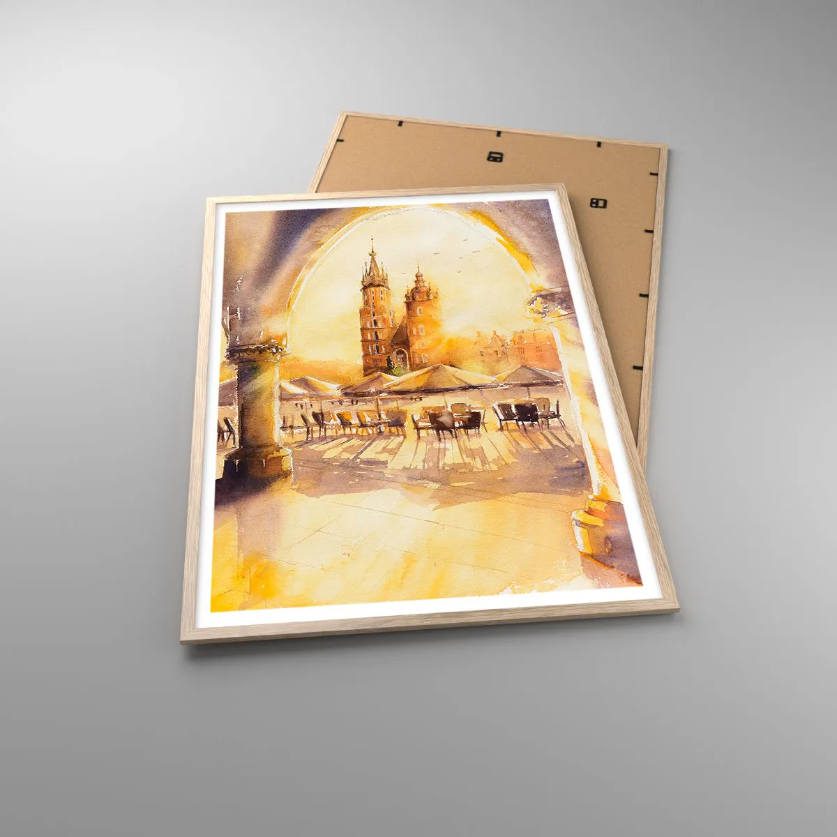 Pôster com moldura de carvalho claro - Pôr do sol na praça do mercado de Cracóvia - 70x100 cm