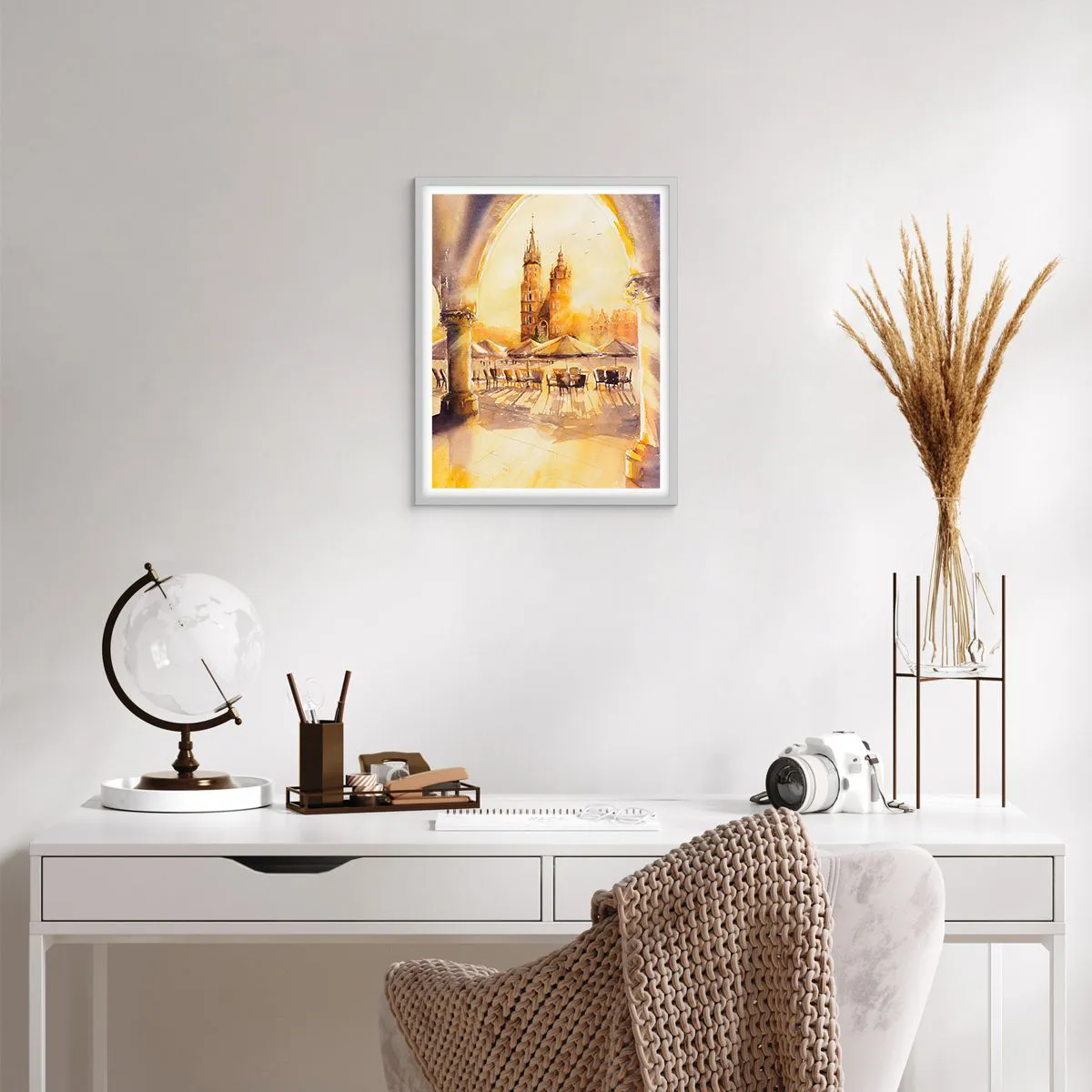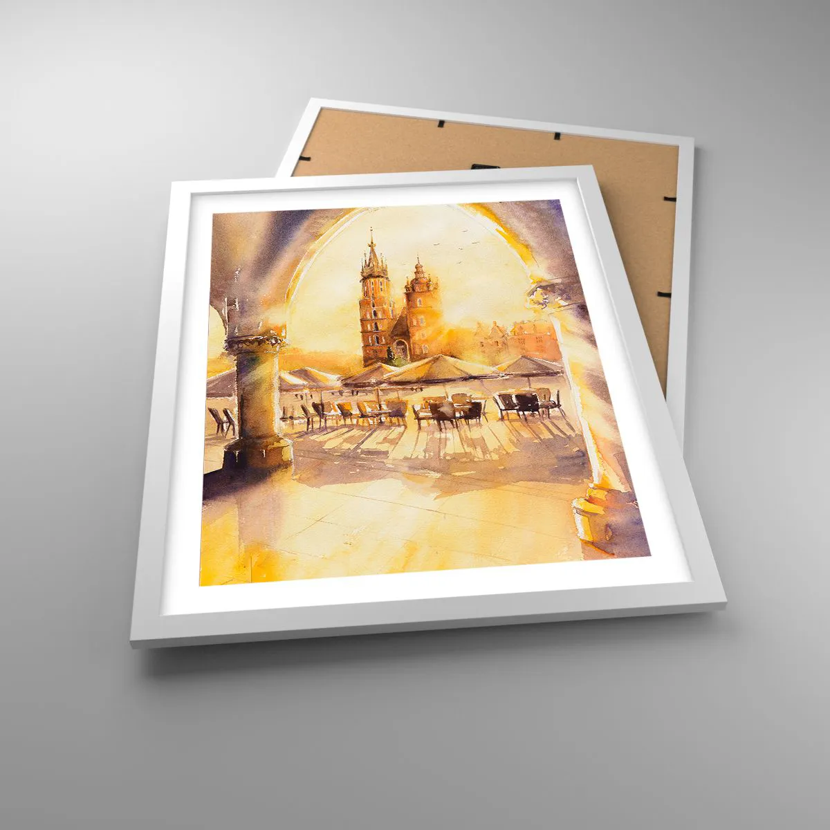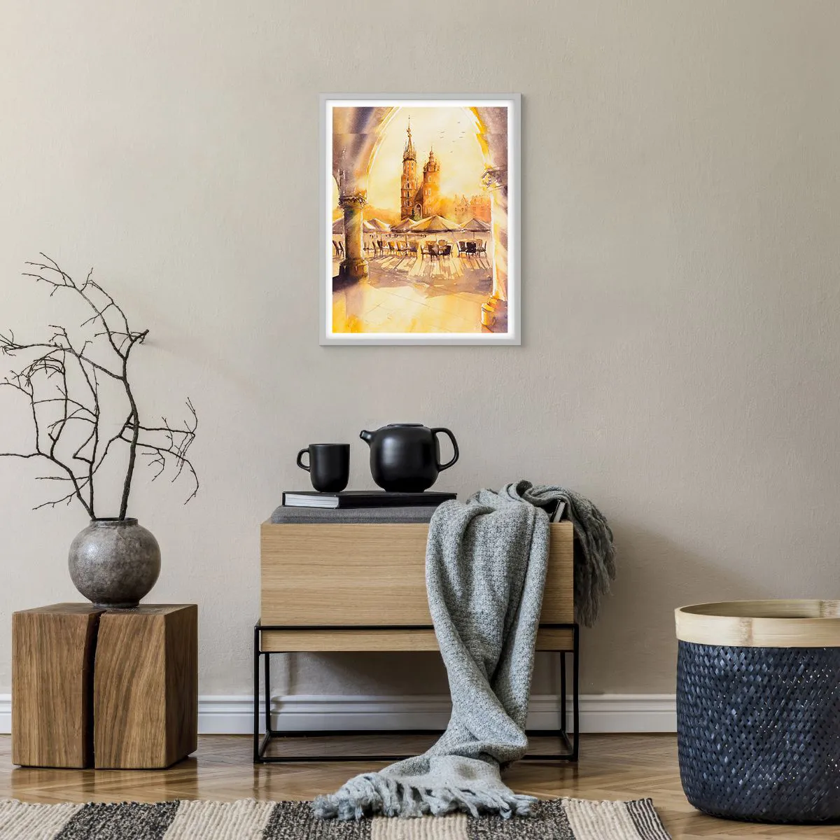 Pôster em moldura branca - Pôr do sol na praça do mercado de Cracóvia - 40x50 cm