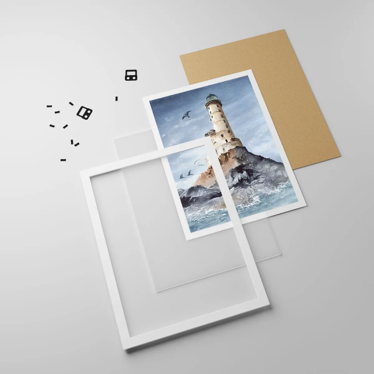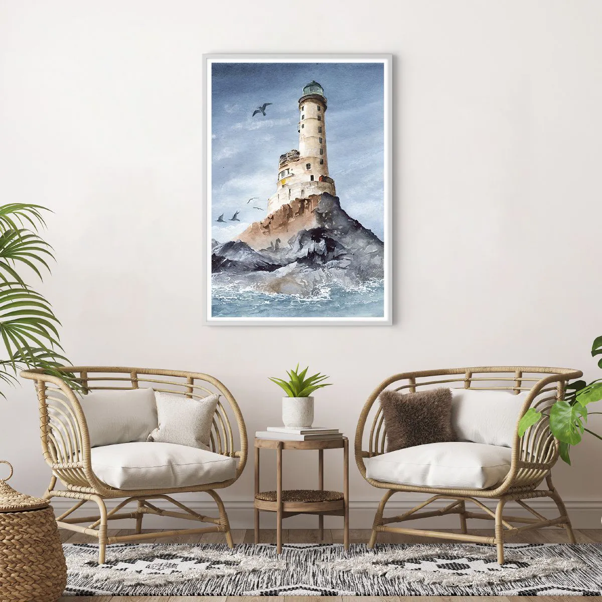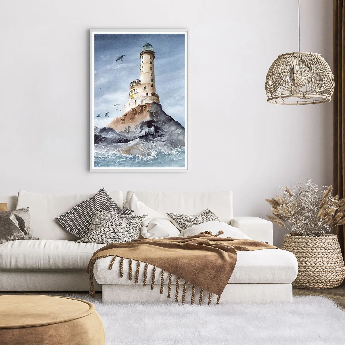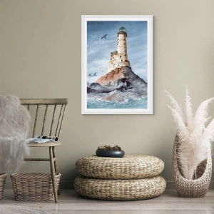 • Farol, Mar, Gaivota, Náutico, Viagens, Arte, Para o escritório, Para o escritório, Para a sala de jantar, Para a casa de banho, Para o hall, Para a sala de estar, Para o quarto, Marrom, Azul, Cinza, Vertical
