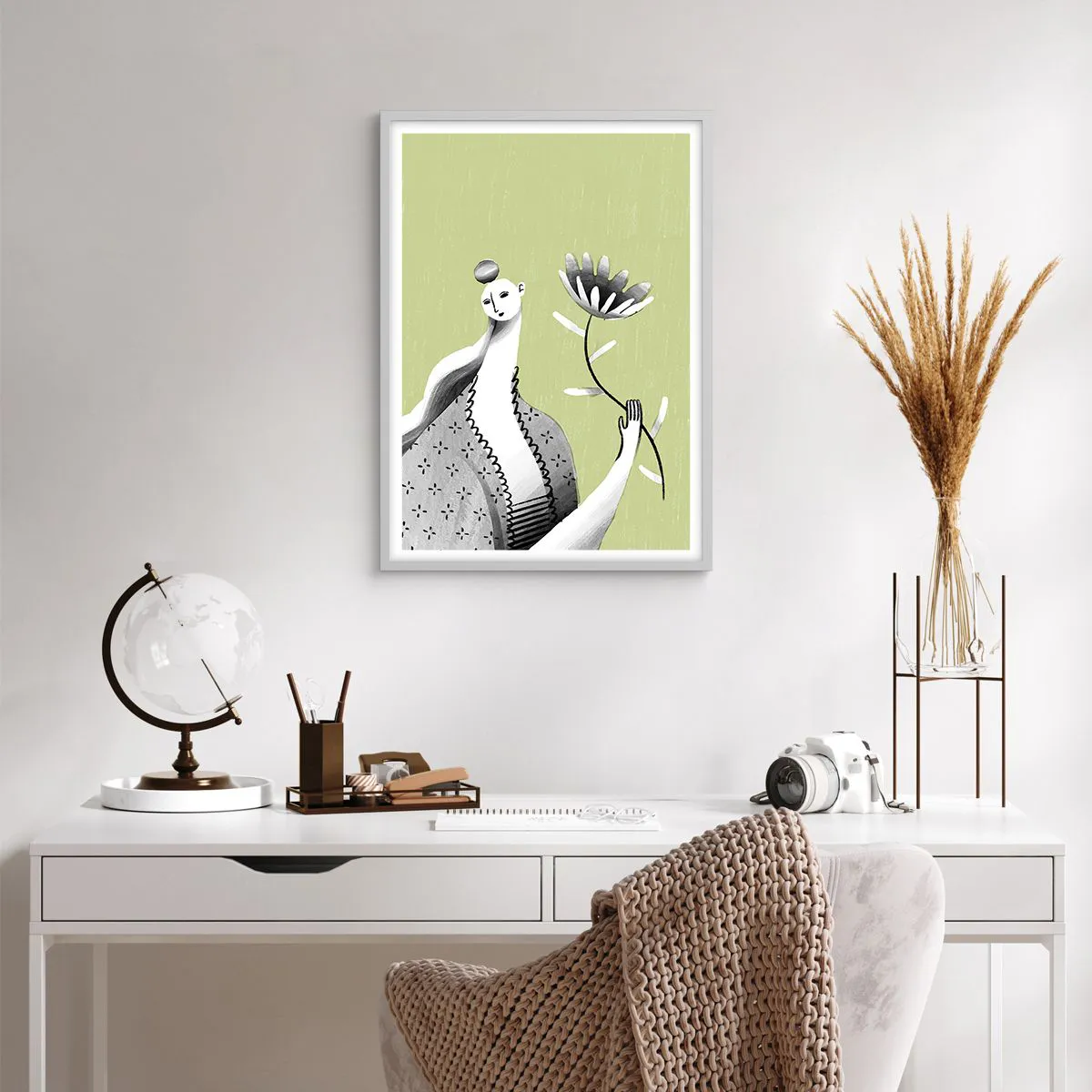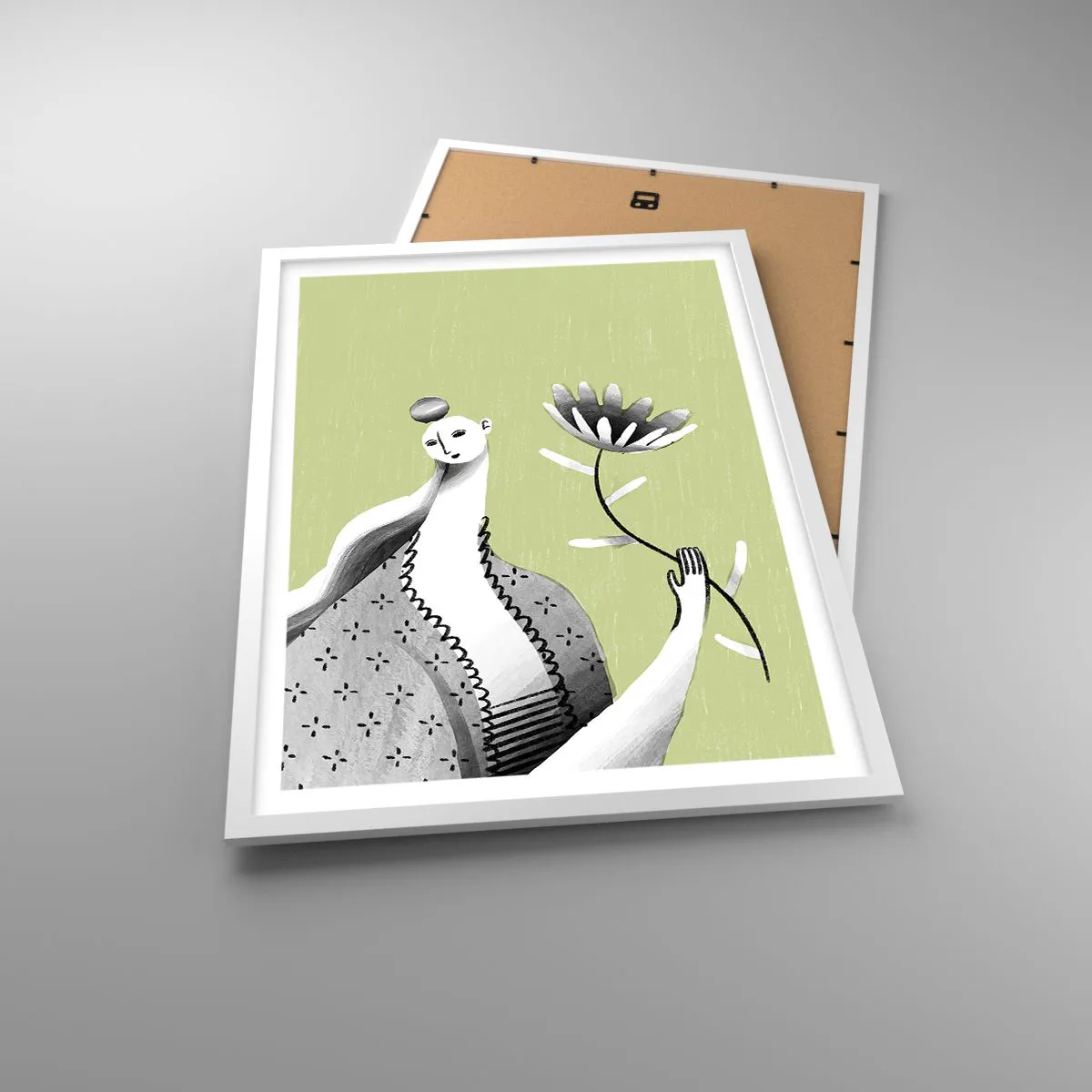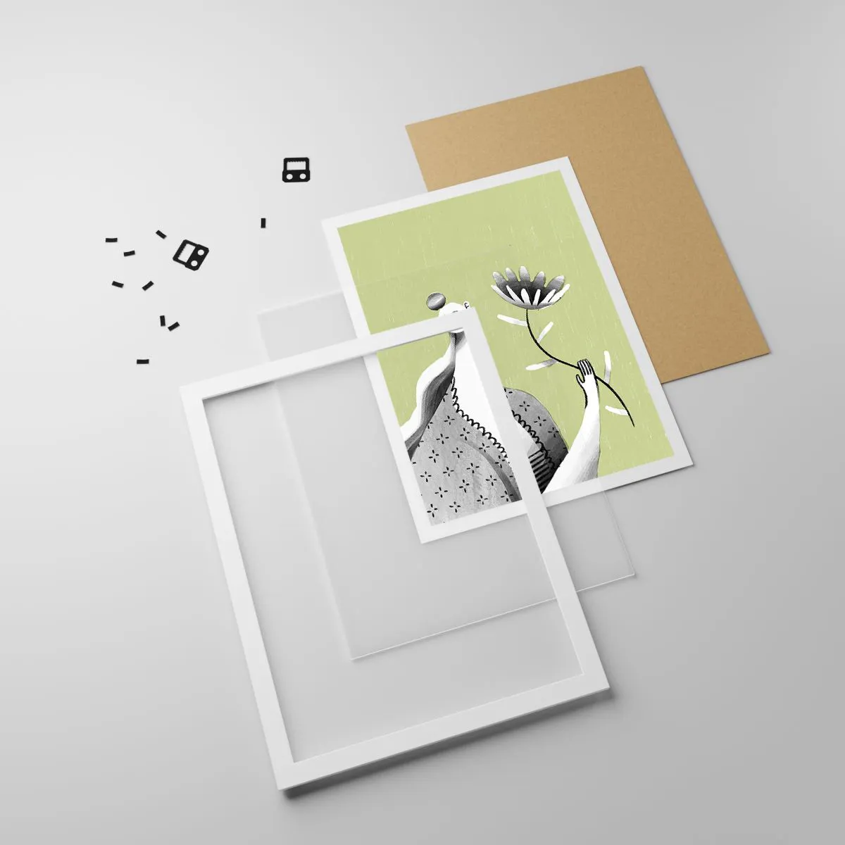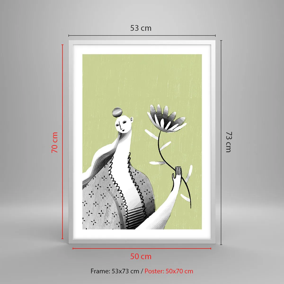 Pôster em moldura branca - Retrato modernista – segurando uma flor - 50x70 cm