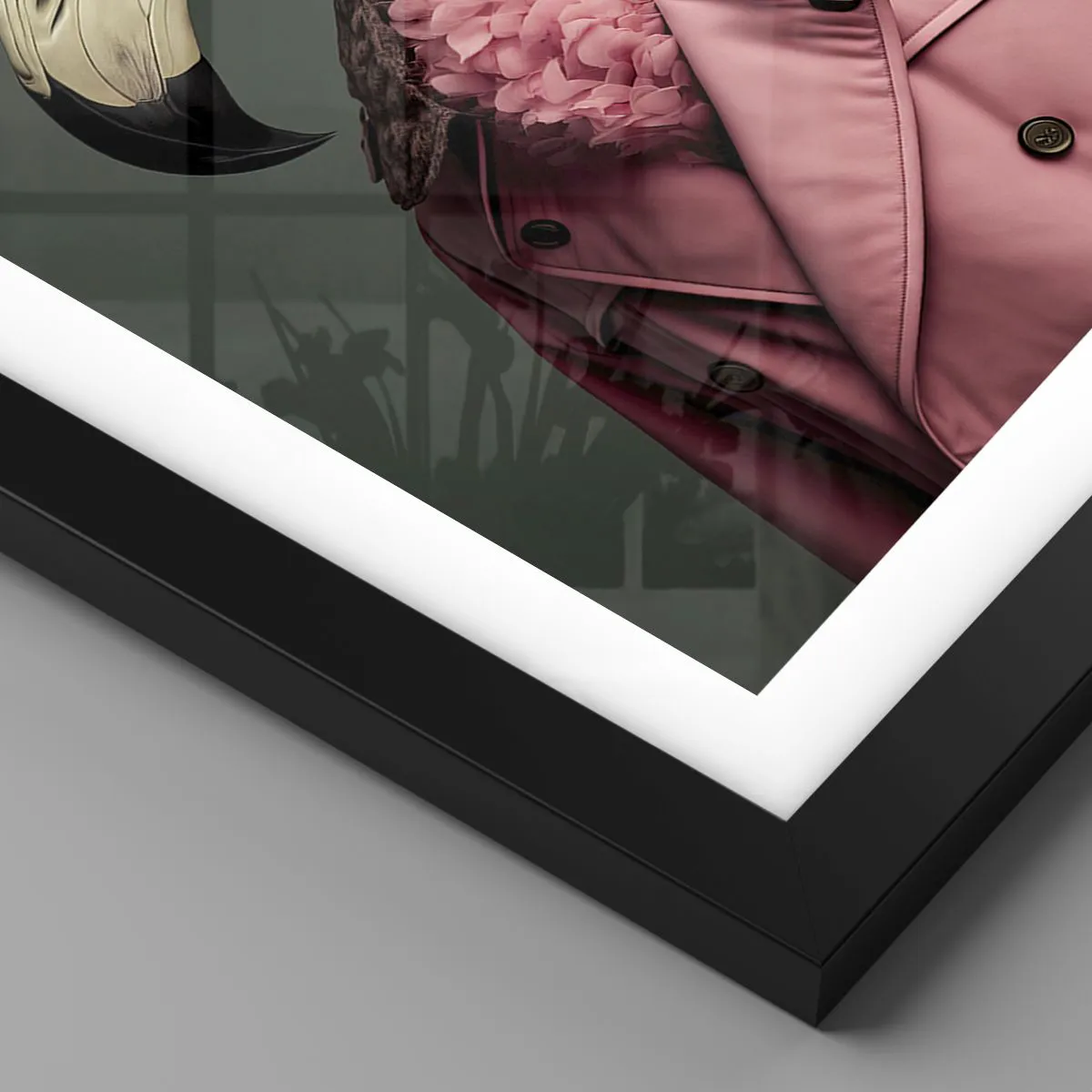 "Verdadeiramente Elegante" é um pôster extraordinário que combina o mundo da natureza com a estética da moda e da vanguarda. Um flamingo estiloso com um elegante casaco rosa atrai a atenção e intriga, criando uma interpretação original de um retrato clássico. O acabamento detalhado, o sombreamento realista e um sutil jogo de luz e sombra conferem profundidade e expressividade à imagem.