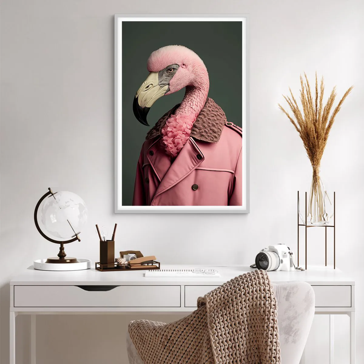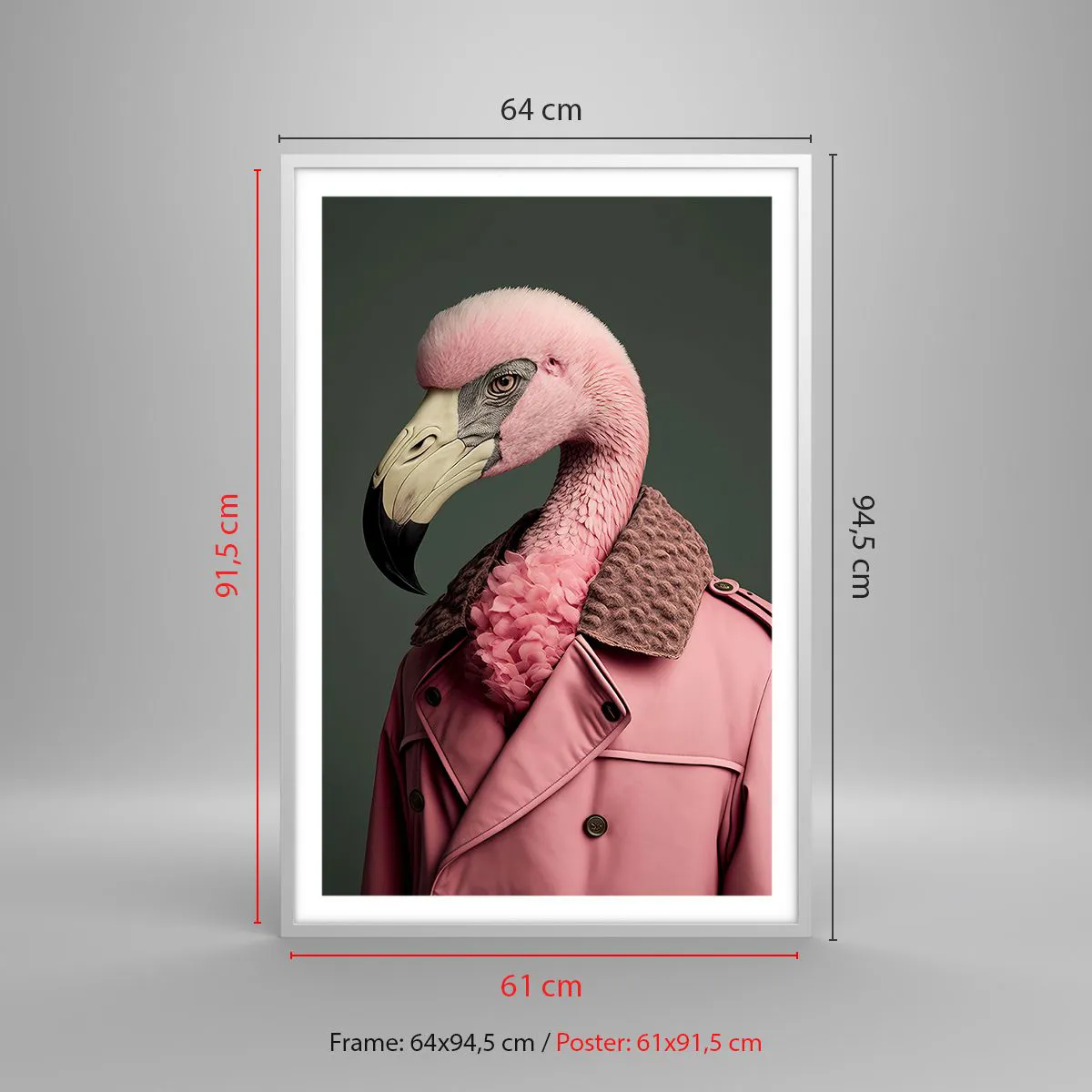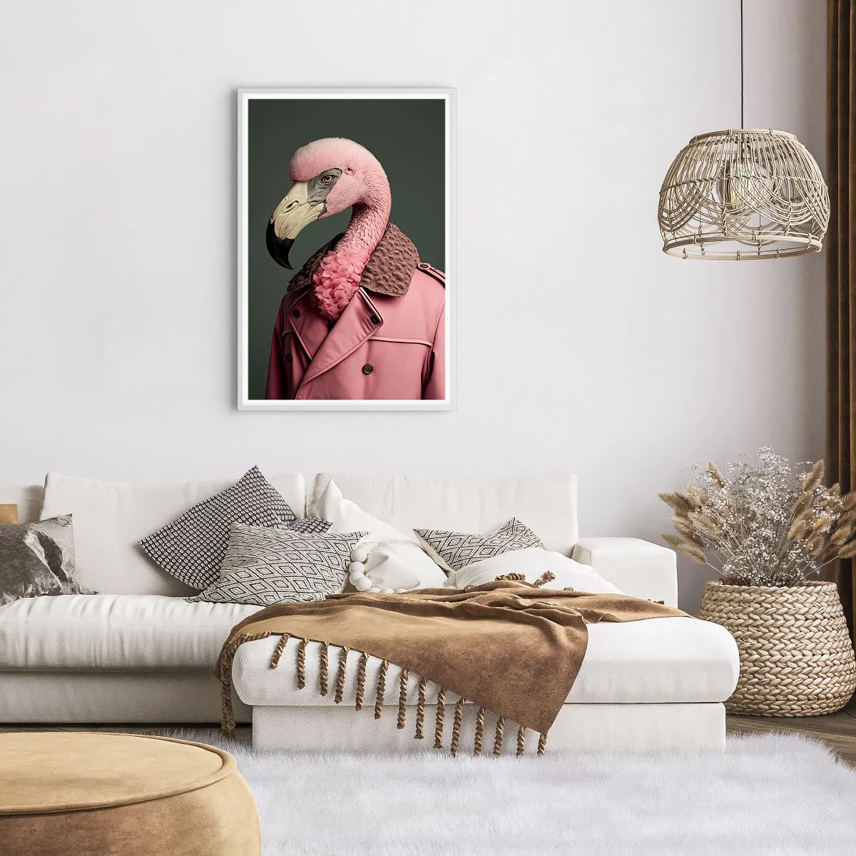 • Flamingo, Retrato, Vestido, Moda, Pastel, Animais, Para a sala de jantar, Para o hall, Para a sala de estar, Para o quarto, Rosa, cinza, Vertical