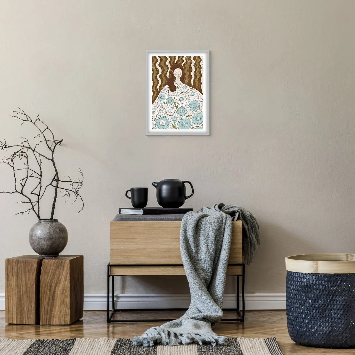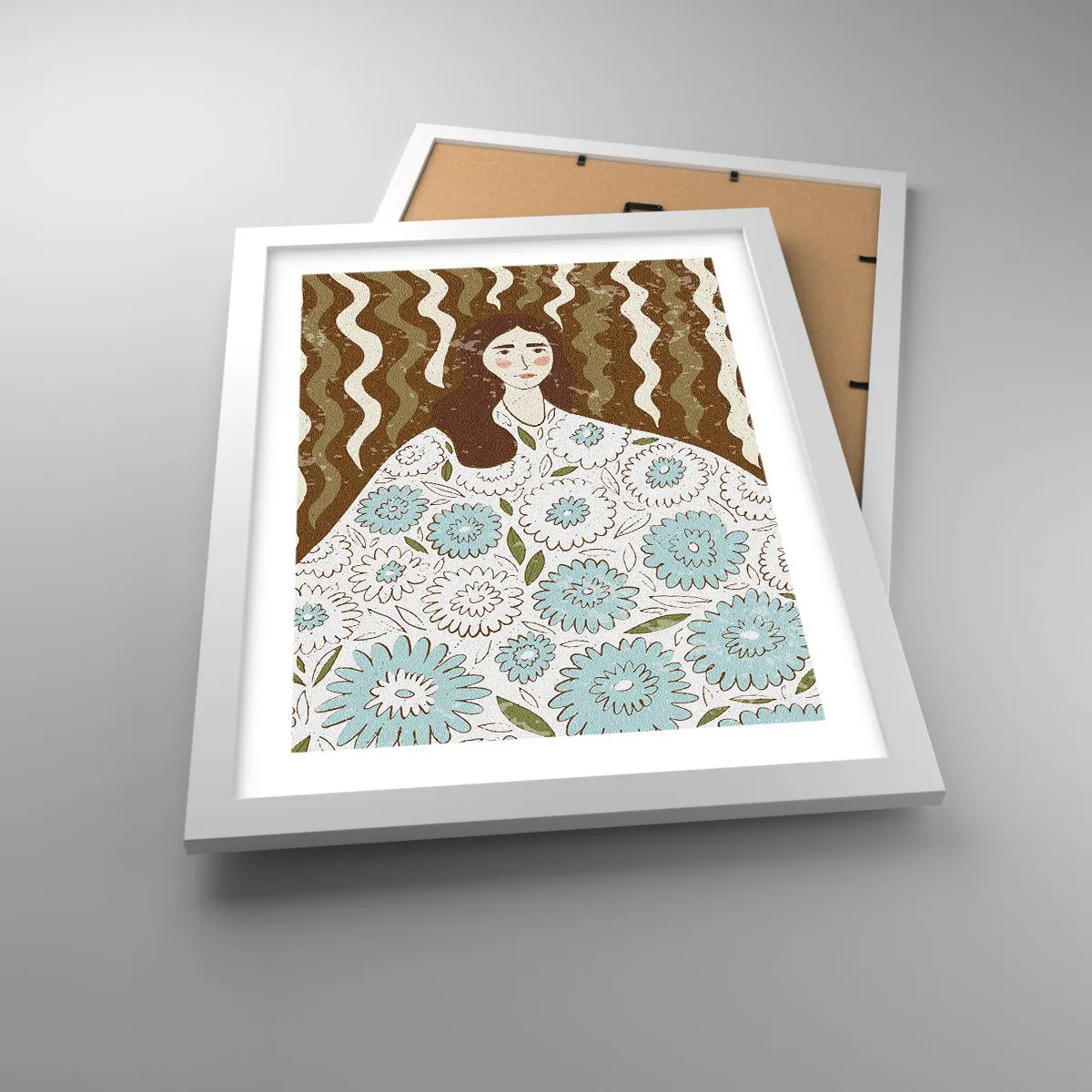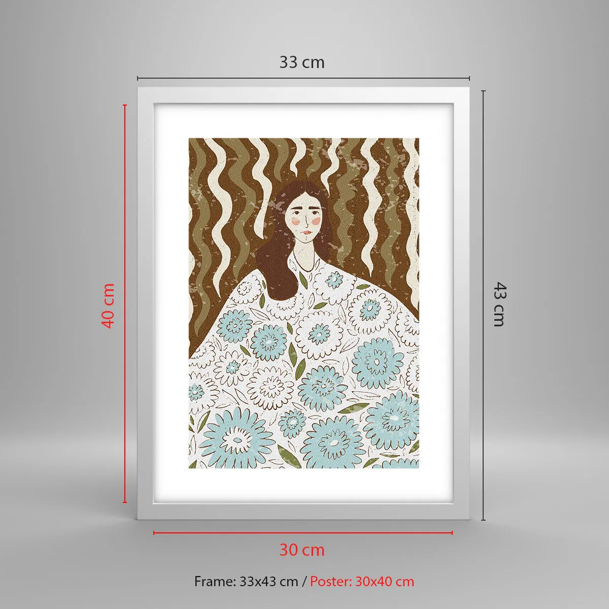 Pôster em moldura branca - Retrato em um manto floral - 30x40 cm