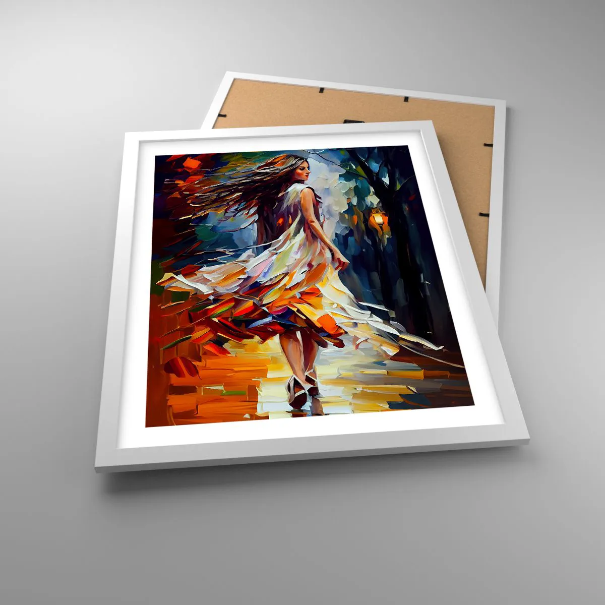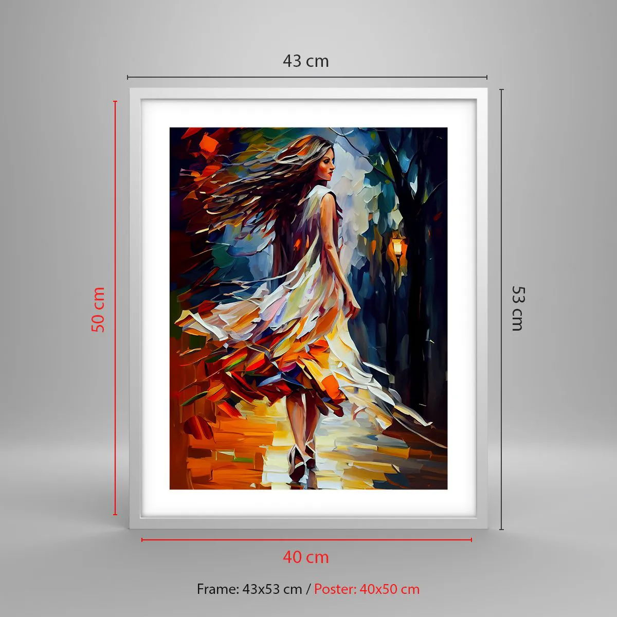 Pôster em moldura branca - Garota outono - 40x50 cm