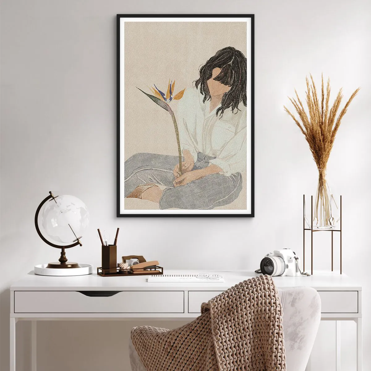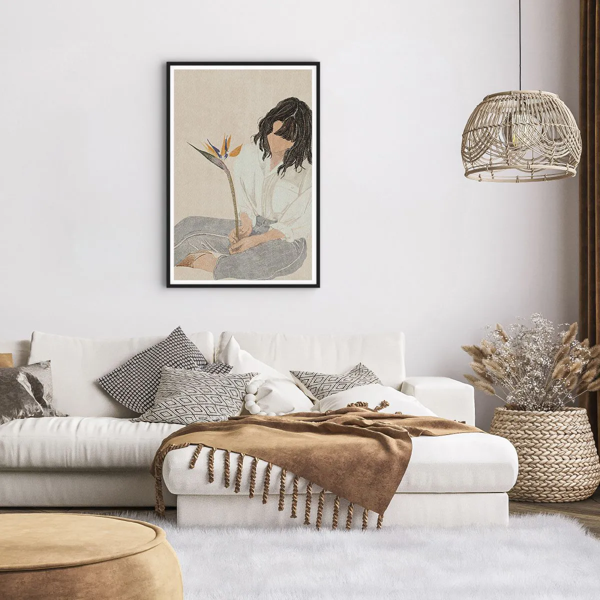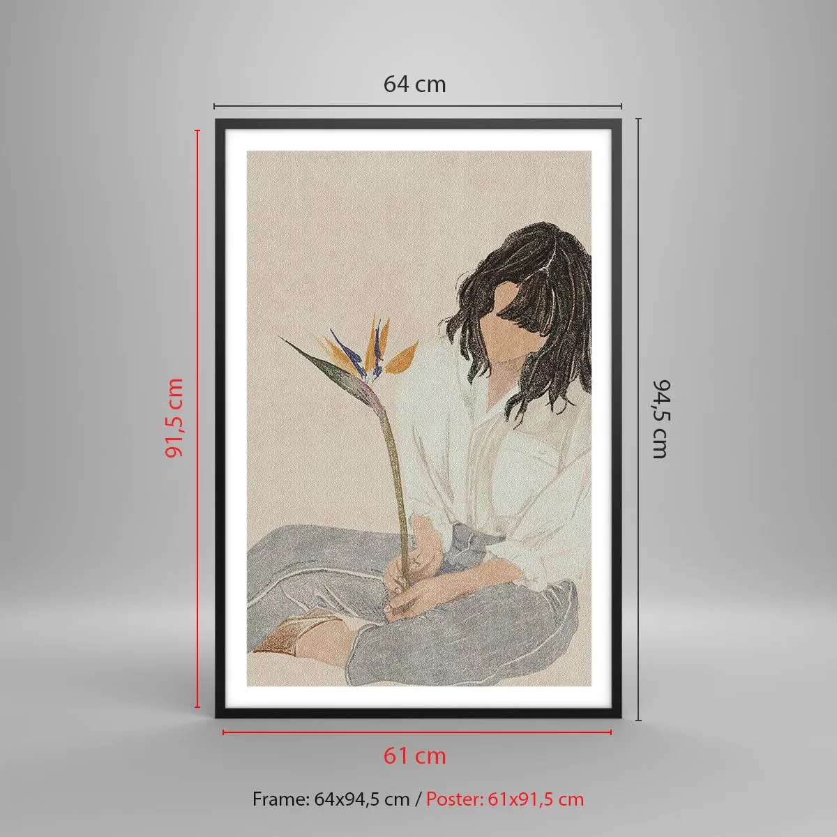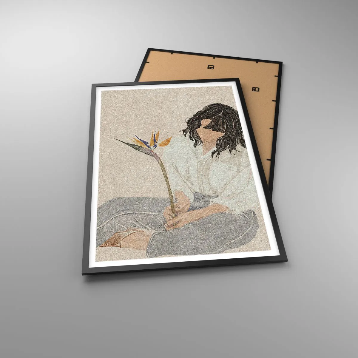 Pôster com moldura preta - Retrato com uma flor exótica - 61x91 cm