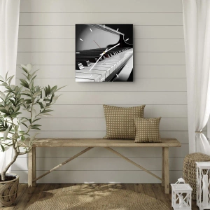 O relógio é feito de vidro de 4mm de espessura. A tecnologia de relógio está em conformidade com a classe de segurança 2B2 de acordo com a norma PN-EN 12600:2004, o que garante resistência ao impacto. O relógio em vidro está pronto para ser pendurado – possui um gancho de metal montado na parte de trás do relógio e um espaçador de espuma, que regula a distância uniforme entre o relógio e a parede. O relógio tem um mecanismo de fluxo silencioso alimentado por uma bateria de 1,5 V - bateria AA (a bateria não está incluída).