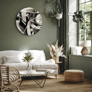 Este relógio de parede é perfeito como elemento decorativo em salas de estar, escritórios, garagens, bem como em espaços decorados em estilo industrial ou retrô. Graças ao seu tema único, ele se encaixa perfeitamente em composições inspiradas na paixão por carros clássicos e pela indústria automotiva. Este produto ARTTOR é feito em vidro de 30x30 cm, em formato redondo. Materiais cuidadosamente selecionados e acabamento de qualidade se traduzem em durabilidade e confiabilidade. O mecanismo do relógio opera silenciosamente, garantindo conforto de uso. Este relógio de parede com um motivo clássico não é apenas um item prático para o dia a dia, mas também uma decoração única que enfatiza o estilo individual do interior. "Brilho atemporal" é uma combinação harmoniosa de funcionalidade prática e estética expressiva.