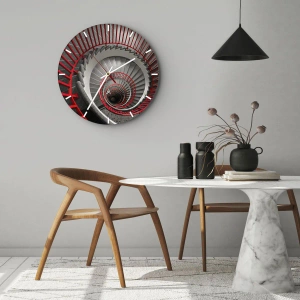 O relógio é feito de vidro de 4mm de espessura. A tecnologia de relógio está em conformidade com a classe de segurança 2B2 de acordo com a norma PN-EN 12600:2004, o que garante resistência ao impacto. O relógio em vidro está pronto para ser pendurado – possui um gancho de metal montado na parte de trás do relógio e um espaçador de espuma, que regula a distância uniforme entre o relógio e a parede. O relógio tem um mecanismo de fluxo silencioso alimentado por uma bateria de 1,5 V - bateria AA (a bateria não está incluída).