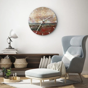 Relógio de parede - Relógio em vidro - Uma paisagem abstrata com textura e tons quentes de terra. - 30x30cm - Talvez seja o mar - Decoração de parede moderna para a sala de estar, cozinha e quarto ARTTOR