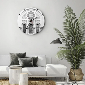 O relógio é feito de vidro de 4mm de espessura. A tecnologia de relógio está em conformidade com a classe de segurança 2B2 de acordo com a norma PN-EN 12600:2004, o que garante resistência ao impacto. O relógio em vidro está pronto para ser pendurado – possui um gancho de metal montado na parte de trás do relógio e um espaçador de espuma, que regula a distância uniforme entre o relógio e a parede. O relógio tem um mecanismo de fluxo silencioso alimentado por uma bateria de 1,5 V - bateria AA (a bateria não está incluída).