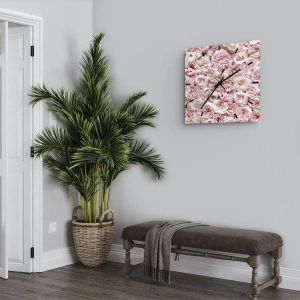 Relógio de parede - Relógio em vidro - Uma cama de rosas - 40x40 cm