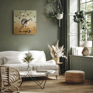 Relógio de parede - Relógio em vidro - Composição abstrata com esferas e formas geométricas - 30x30cm - Nada pode acontecer - Decoração de parede moderna para a sala de estar, cozinha e quarto ARTTOR