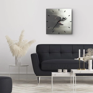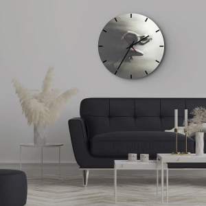 O relógio é feito de vidro de 4mm de espessura. A tecnologia de relógio está em conformidade com a classe de segurança 2B2 de acordo com a norma PN-EN 12600:2004, o que garante resistência ao impacto. O relógio em vidro está pronto para ser pendurado – possui um gancho de metal montado na parte de trás do relógio e um espaçador de espuma, que regula a distância uniforme entre o relógio e a parede. O relógio tem um mecanismo de fluxo silencioso alimentado por uma bateria de 1,5 V - bateria AA (a bateria não está incluída).