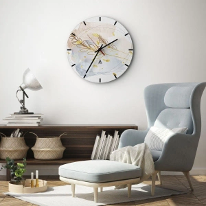 O relógio é feito de vidro de 4mm de espessura. A tecnologia de relógio está em conformidade com a classe de segurança 2B2 de acordo com a norma PN-EN 12600:2004, o que garante resistência ao impacto. O relógio em vidro está pronto para ser pendurado – possui um gancho de metal montado na parte de trás do relógio e um espaçador de espuma, que regula a distância uniforme entre o relógio e a parede. O relógio tem um mecanismo de fluxo silencioso alimentado por uma bateria de 1,5 V - bateria AA (a bateria não está incluída).