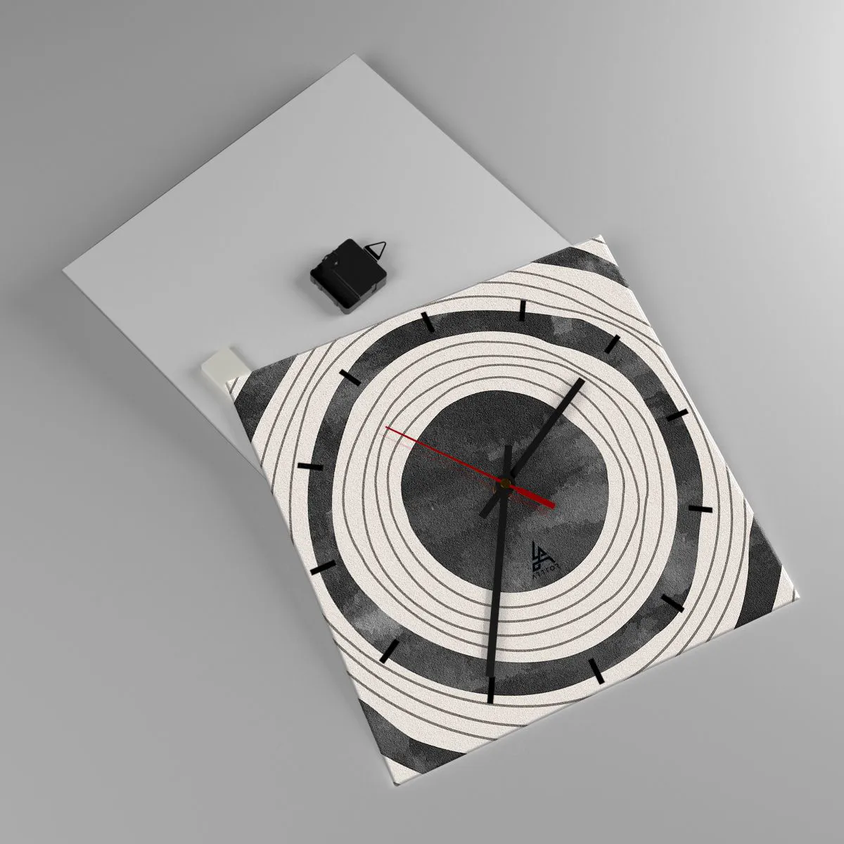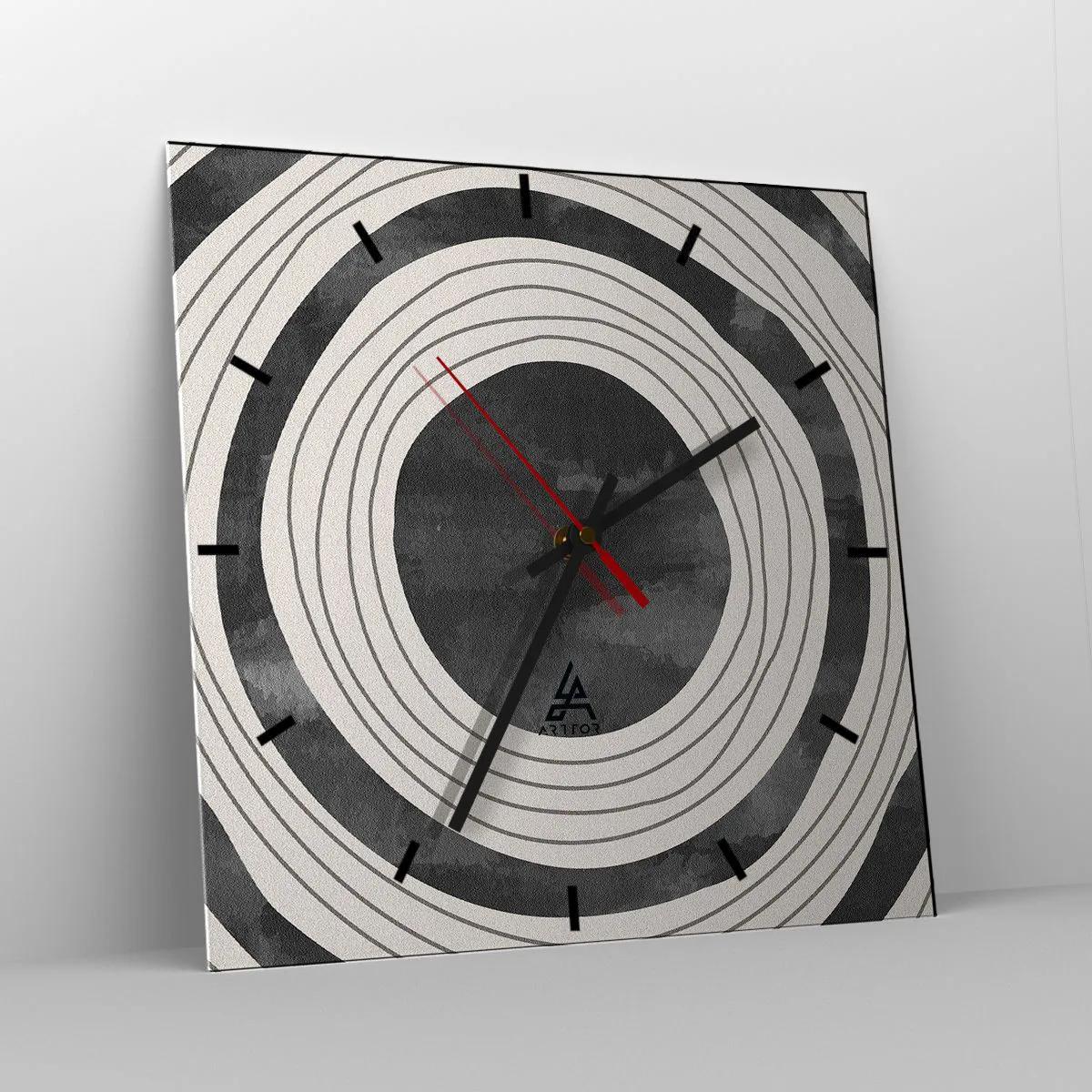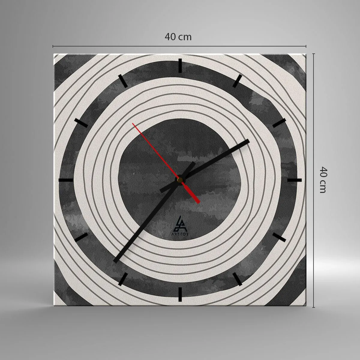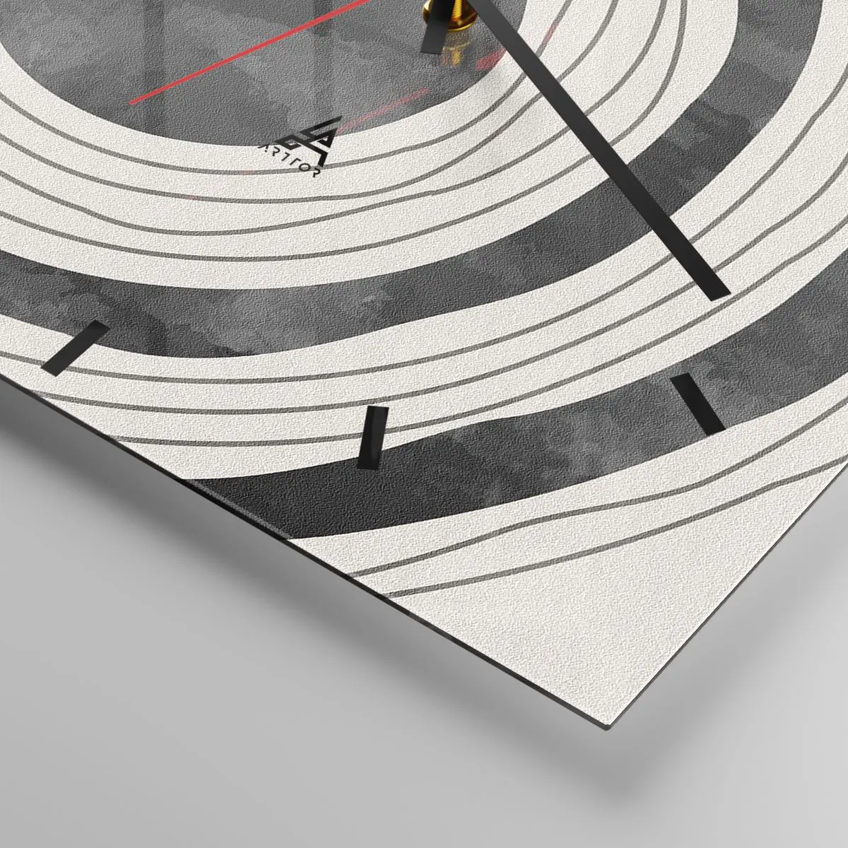 O relógio é feito de vidro de 4mm de espessura. A tecnologia de relógio está em conformidade com a classe de segurança 2B2 de acordo com a norma PN-EN 12600:2004, o que garante resistência ao impacto. O relógio em vidro está pronto para ser pendurado – possui um gancho de metal montado na parte de trás do relógio e um espaçador de espuma, que regula a distância uniforme entre o relógio e a parede. O relógio tem um mecanismo de fluxo silencioso alimentado por uma bateria de 1,5 V - bateria AA (a bateria não está incluída).