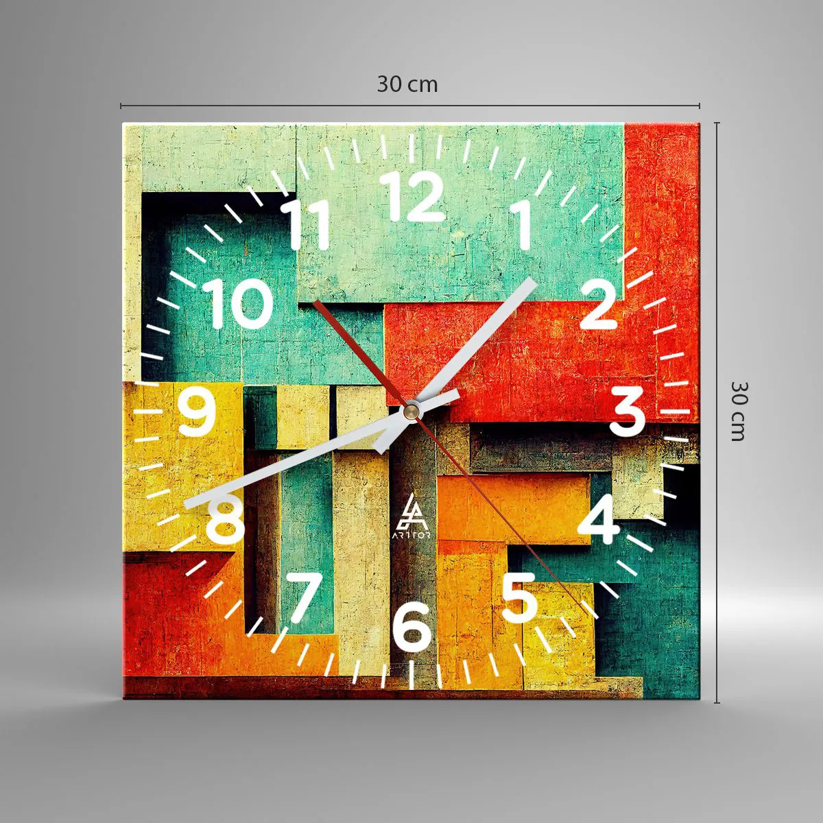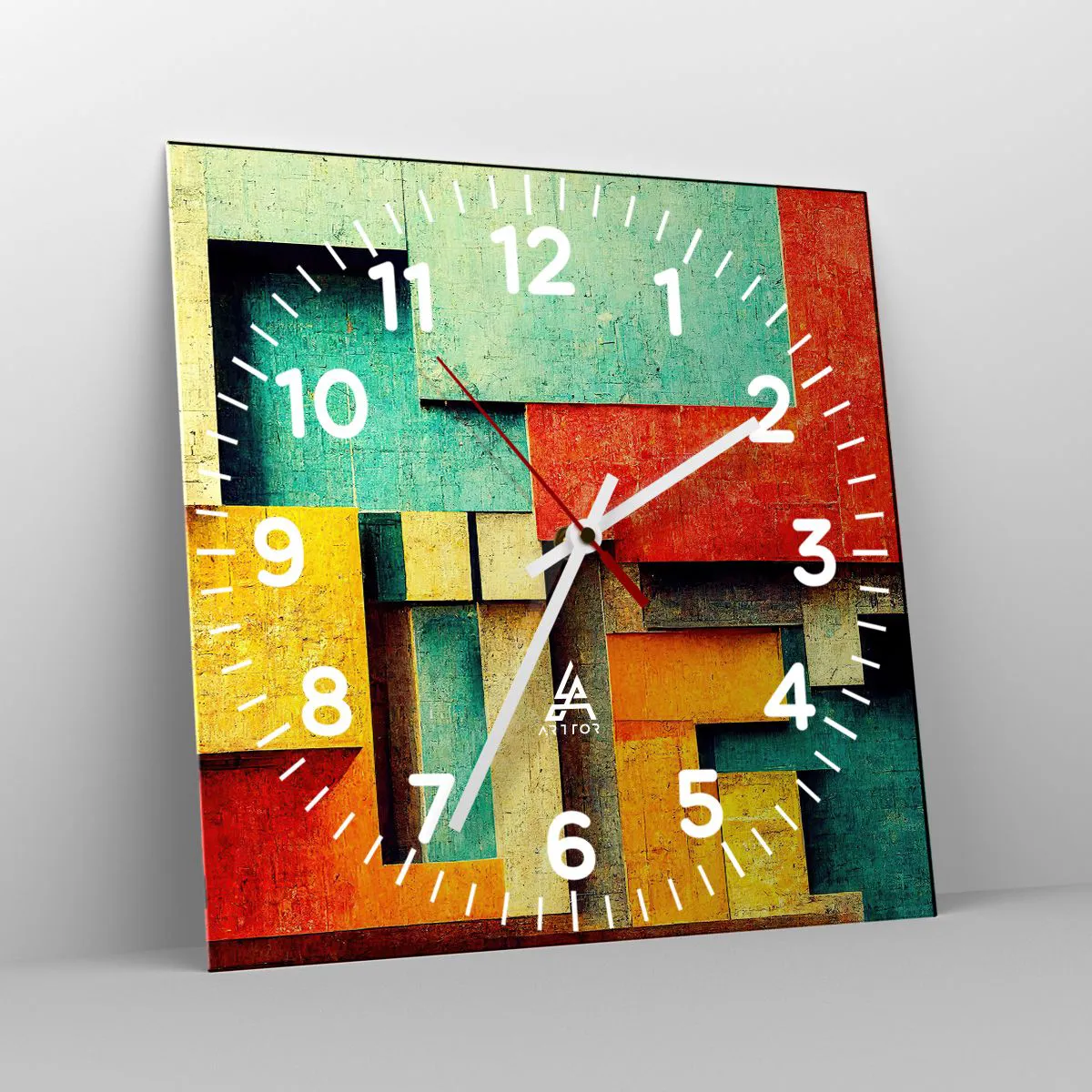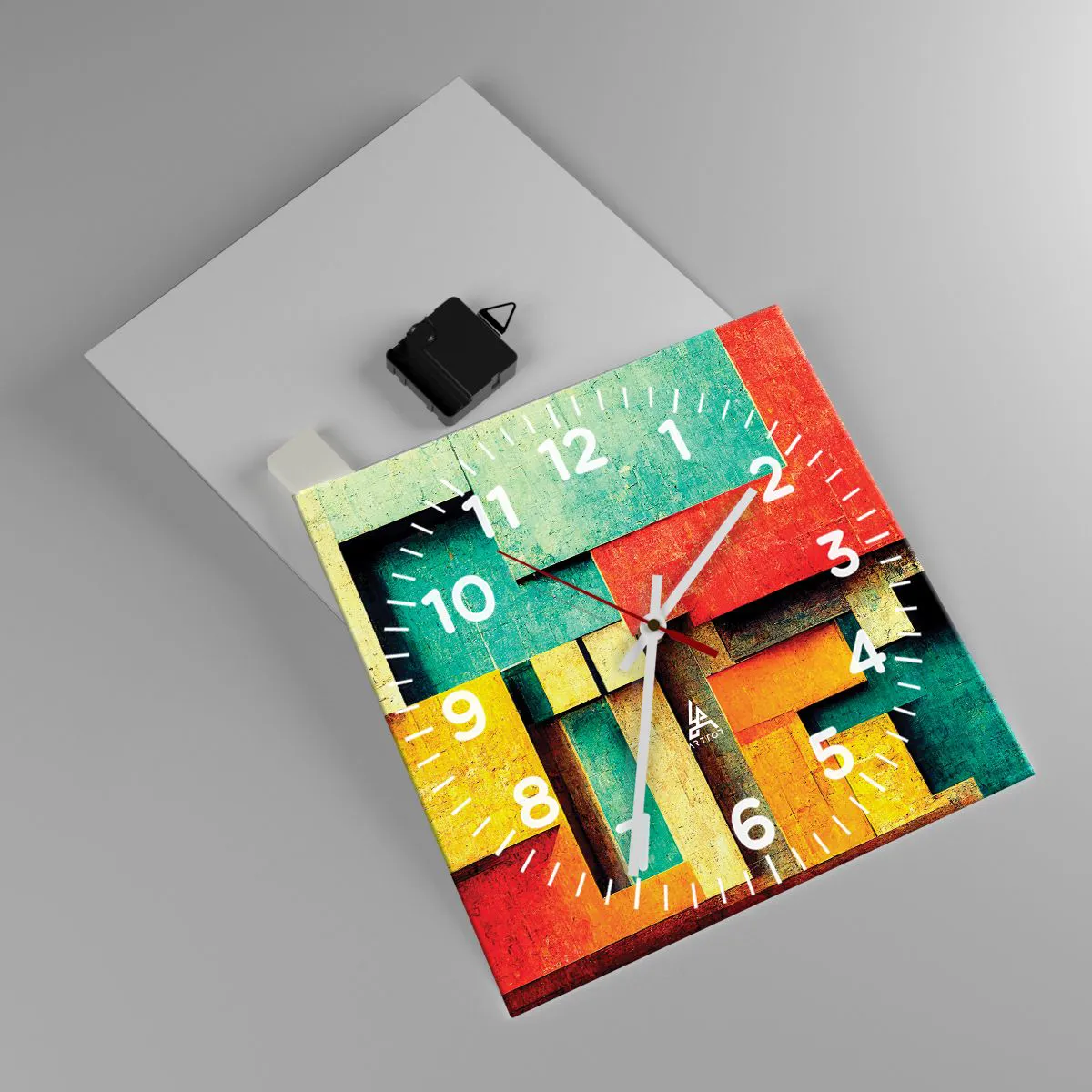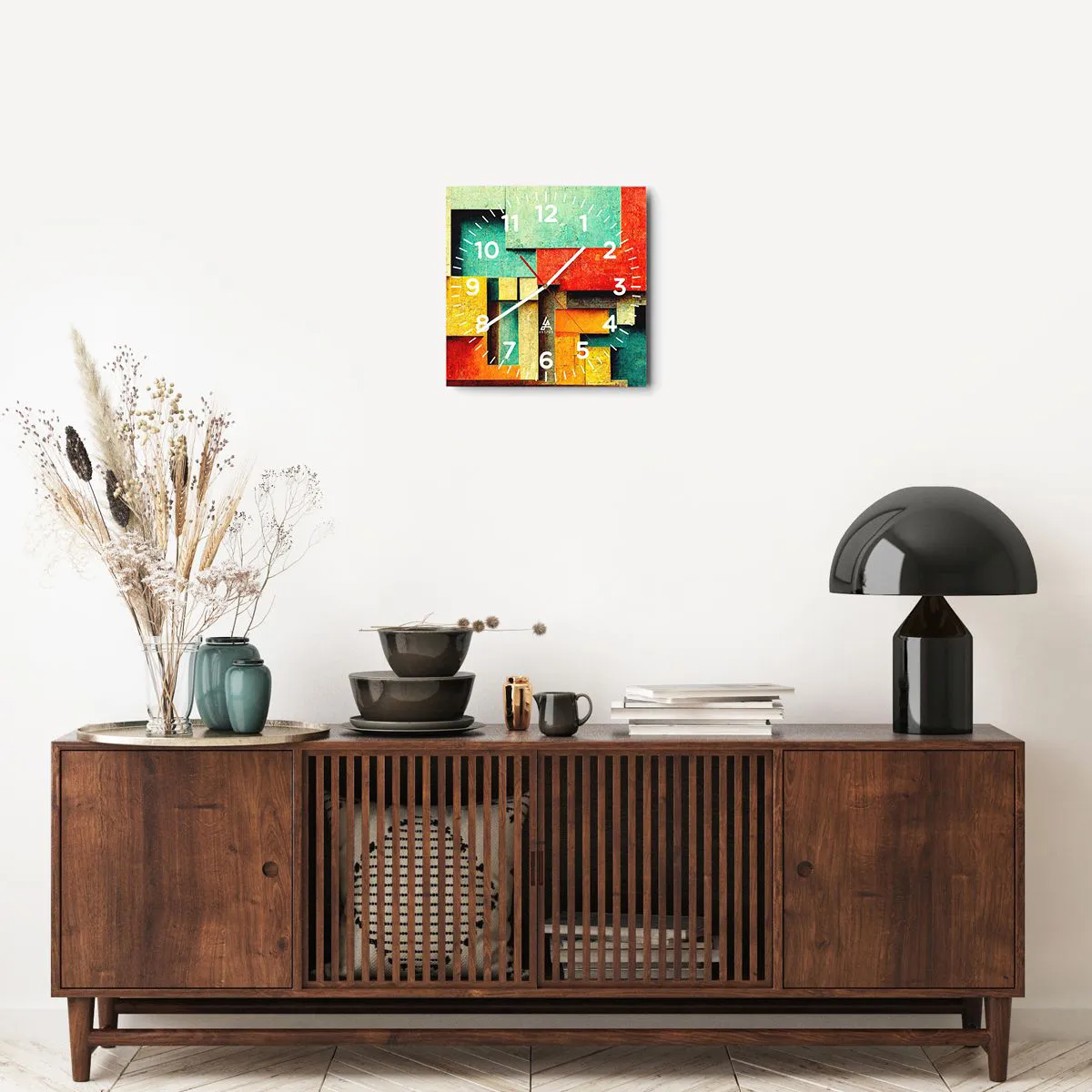 Relógio de parede - Relógio em vidro - Festival de ângulos vivos - 30x30 cm