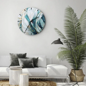 Relógio de parede - Relógio em vidro - Abstração azul com lema dourado - 30x30 cm