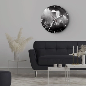 O relógio é feito de vidro de 4mm de espessura. A tecnologia de relógio está em conformidade com a classe de segurança 2B2 de acordo com a norma PN-EN 12600:2004, o que garante resistência ao impacto. O relógio em vidro está pronto para ser pendurado – possui um gancho de metal montado na parte de trás do relógio e um espaçador de espuma, que regula a distância uniforme entre o relógio e a parede. O relógio tem um mecanismo de fluxo silencioso alimentado por uma bateria de 1,5 V - bateria AA (a bateria não está incluída).